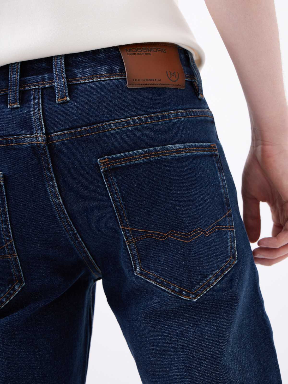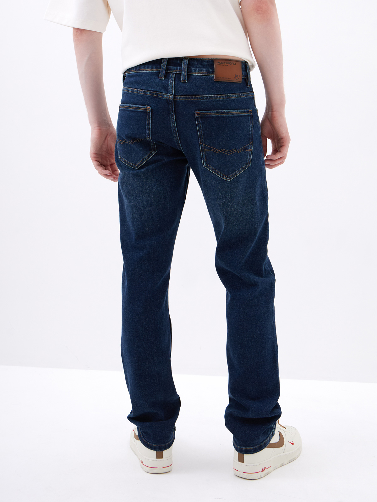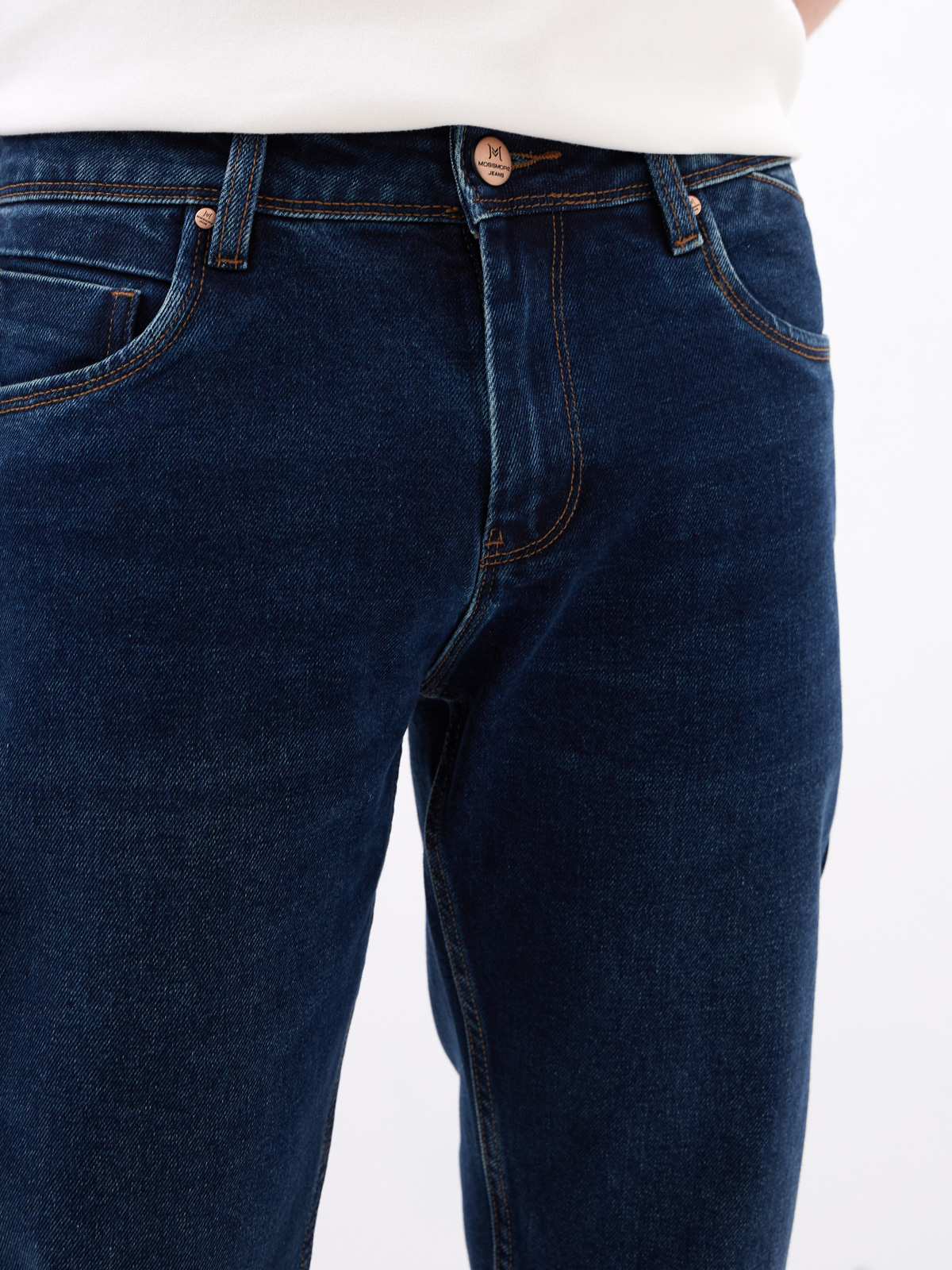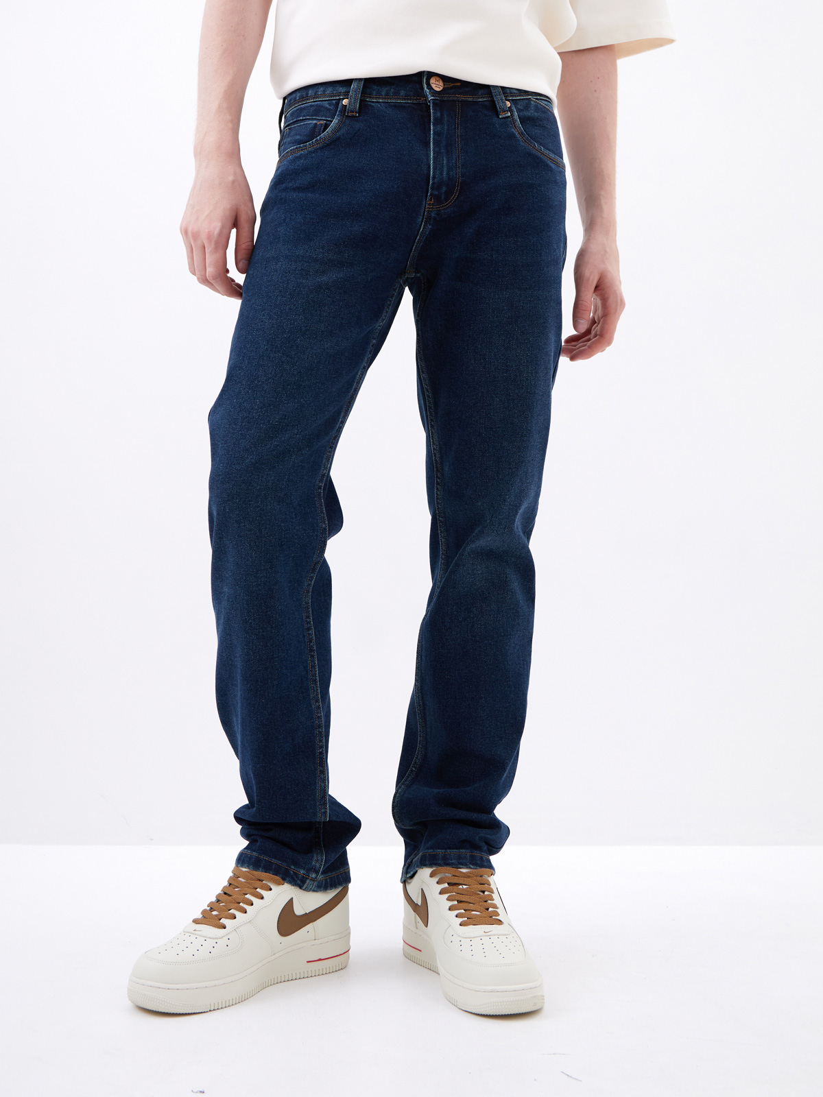 Прямые джинсы из плотного однотонного денима имеют несколько ростовок. Классические мужские темно-синие джинсы - незаменимая вещь в гардеробе современного мужчины. Эта базовая модель подходит для любого случая: от повседневной носки до торжественных мероприятий. Модель выполнена из натурального хлопка с небольшим добавлением эластана. Преимущества мужских синих джинсов: плотная и прочная ткань, которая износостойка и долговечна, классический синий оттенок, который универсален и подходит под любой верх. Различные размеры (длина и посадка) для идеальной посадки по фигуре. И удобная модель с классическим дизайном. Эти практичные мужские джинсы оснащены удобным дополнительным карманом внутри основного. Он специально предназначен для хранения ключей, мелочи или других небольших предметов, которые нужно всегда иметь при себе. Дополнительный карман внутри переднего кармана - это практичная и функциональная деталь, которая значительно упрощает хранение и доступ к мелким предметам.