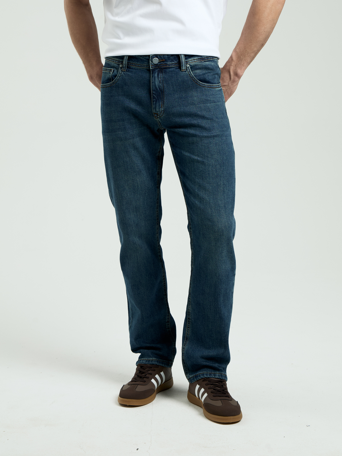 Классический крой с винтажным оттенком и контрастной строчкой привлекает ценителей качества. Эластан обеспечивает комфорт, а износостойкость — долгий срок службы.