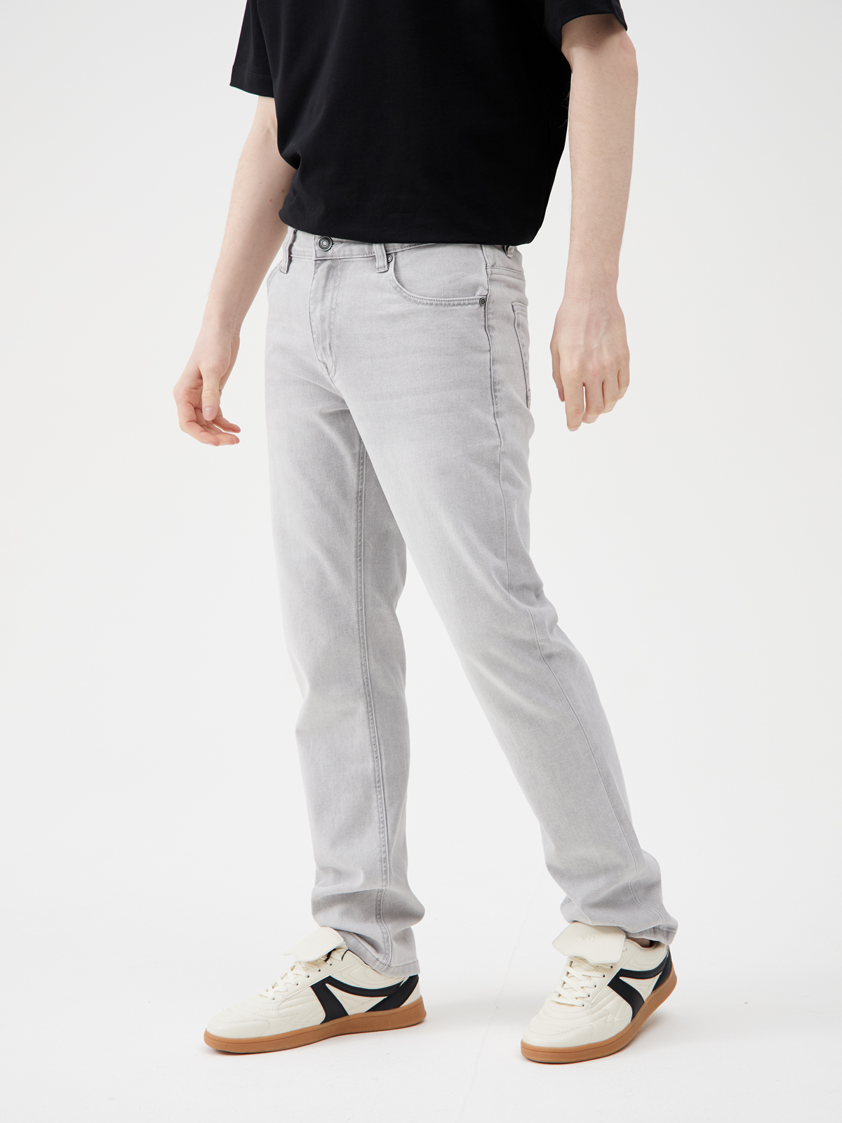 Прямые классические джинсы из хлопка с минимальным добавлением полиэстера на рост 176-182 см. Эти прямые классические джинсы из хлопка с минимальным добавлением полиэстера — основа для стильного и комфортного гардероба современного мужчины. Светло-серый деним обеспечивает универсальность и делает их идеальными для любого повода: от повседневной носки до более официальных мероприятий. Эти джинсы обладают классическим прямым кроем, который подходит любому типу фигуры. Нейтральный светло-серый цвет легко комбинируется с различными стилями и оттенками. Он подходит для создания как повседневных, так и более элегантных образов. Карманы с рельефами сзади создают акцент и добавляют глубину дизайну джинс. Этот элемент придаёт индивидуальность, которая выделяет их среди стандартных моделей. Удобные шлевки на талии позволяют использовать ремень для дополнительного комфорта и стиля. Детали: классический прямой крой, пять карманов, застёжка на металлическую молнию и пуговицу.