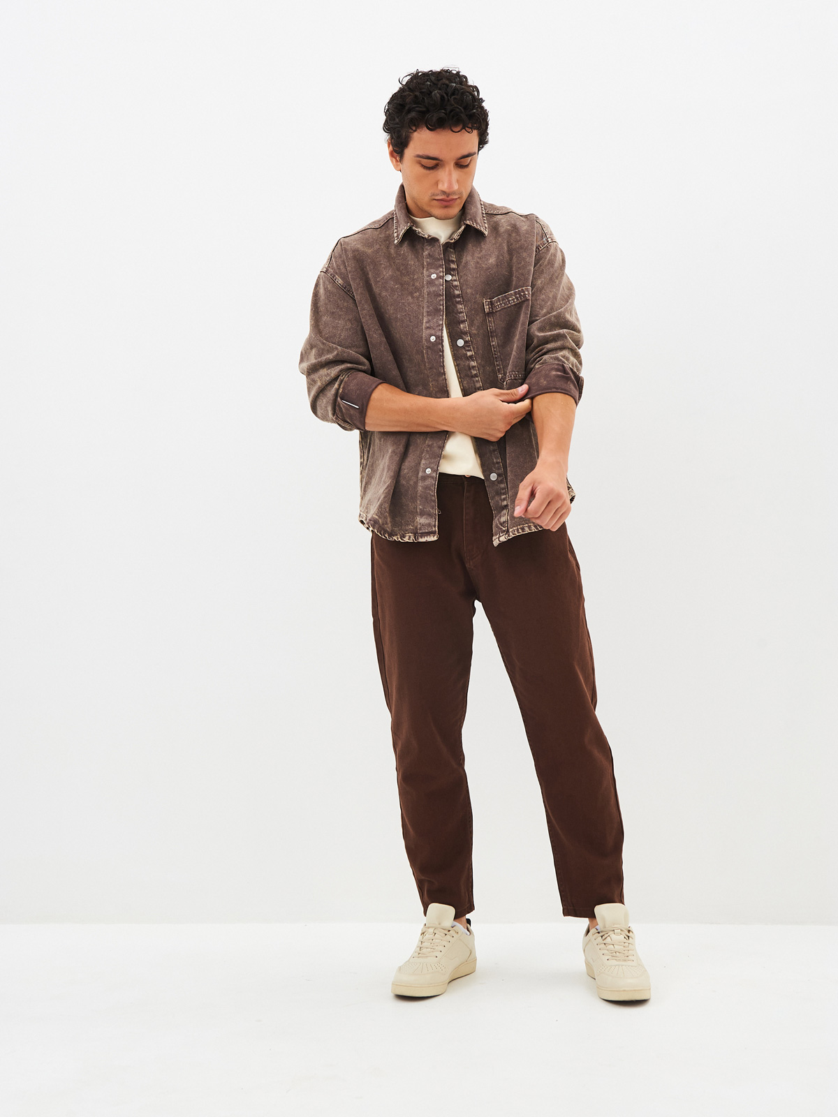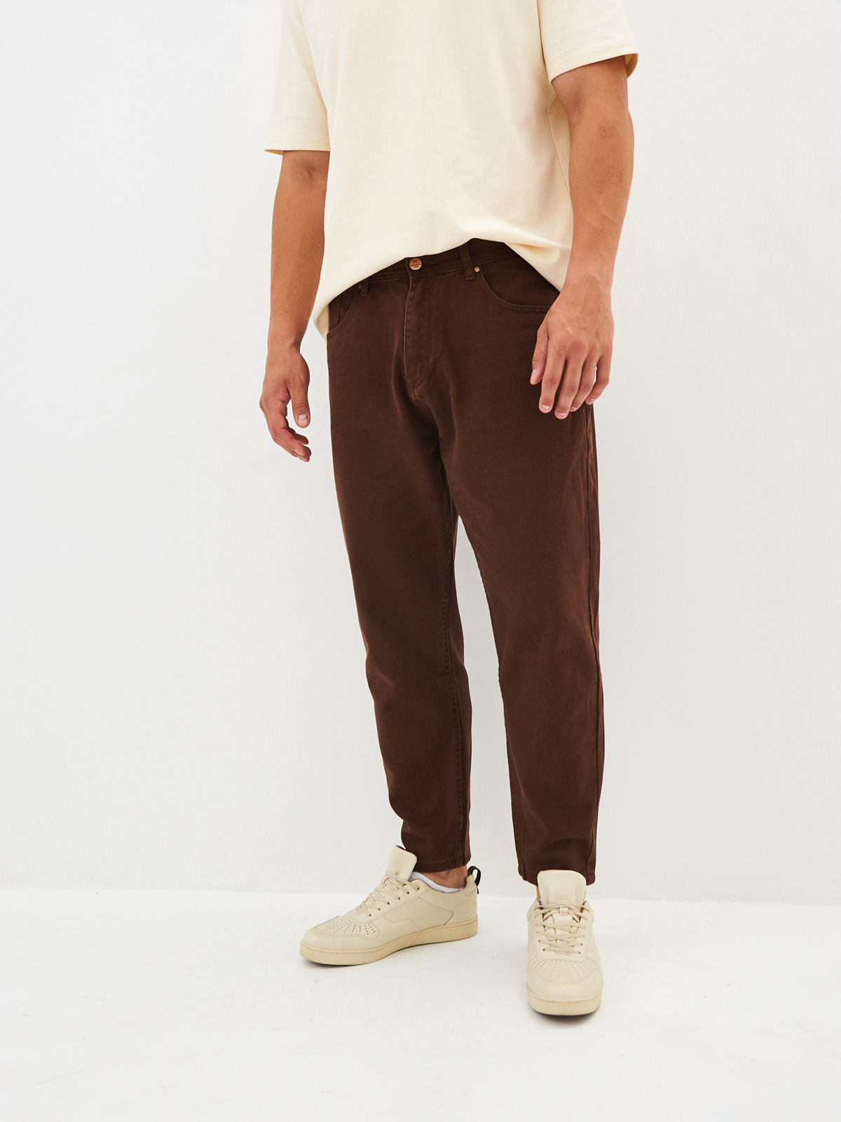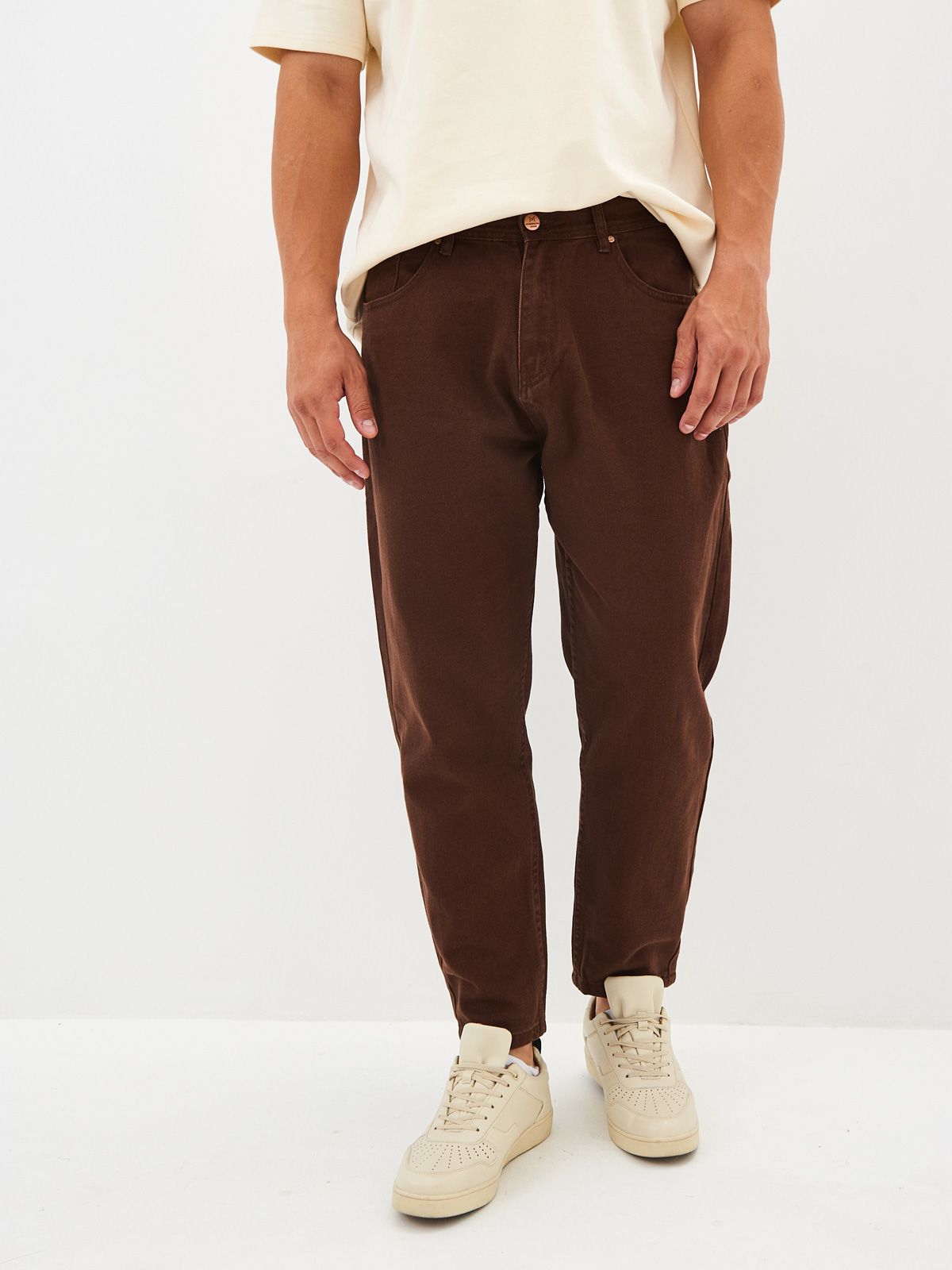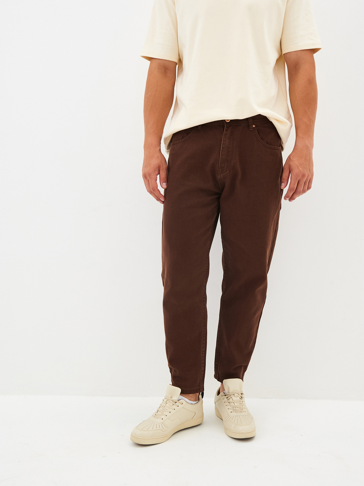 Цветные джинсы силуэта мом из 100% хлопковой облегченной ткани на невысокий рост. Цветные джинсы момы с пятью карманами с фирменными металлическими заклепками, свободной в бедрах посадкой и зауженными брючинами к низу, что характерно для силуэта мом подходят на любой возраст и тип фигуры. Мужские джинсы со средней посадкой с застёжкой на молнию и пуговицу, а также со шлёвками для ремня на талии. В наличии представлены различные варианты цветовой гаммы, что позволит создать множество вариаций, стильных и модных образов на осень и весну. Универсальные джинсы будут отлично сочетаться с клетчатыми рубашками из новой коллекции, а также подойдут для повседневной носки. Особенно модные в этом сезоне момы с укороченными брючинами или с подворотами.