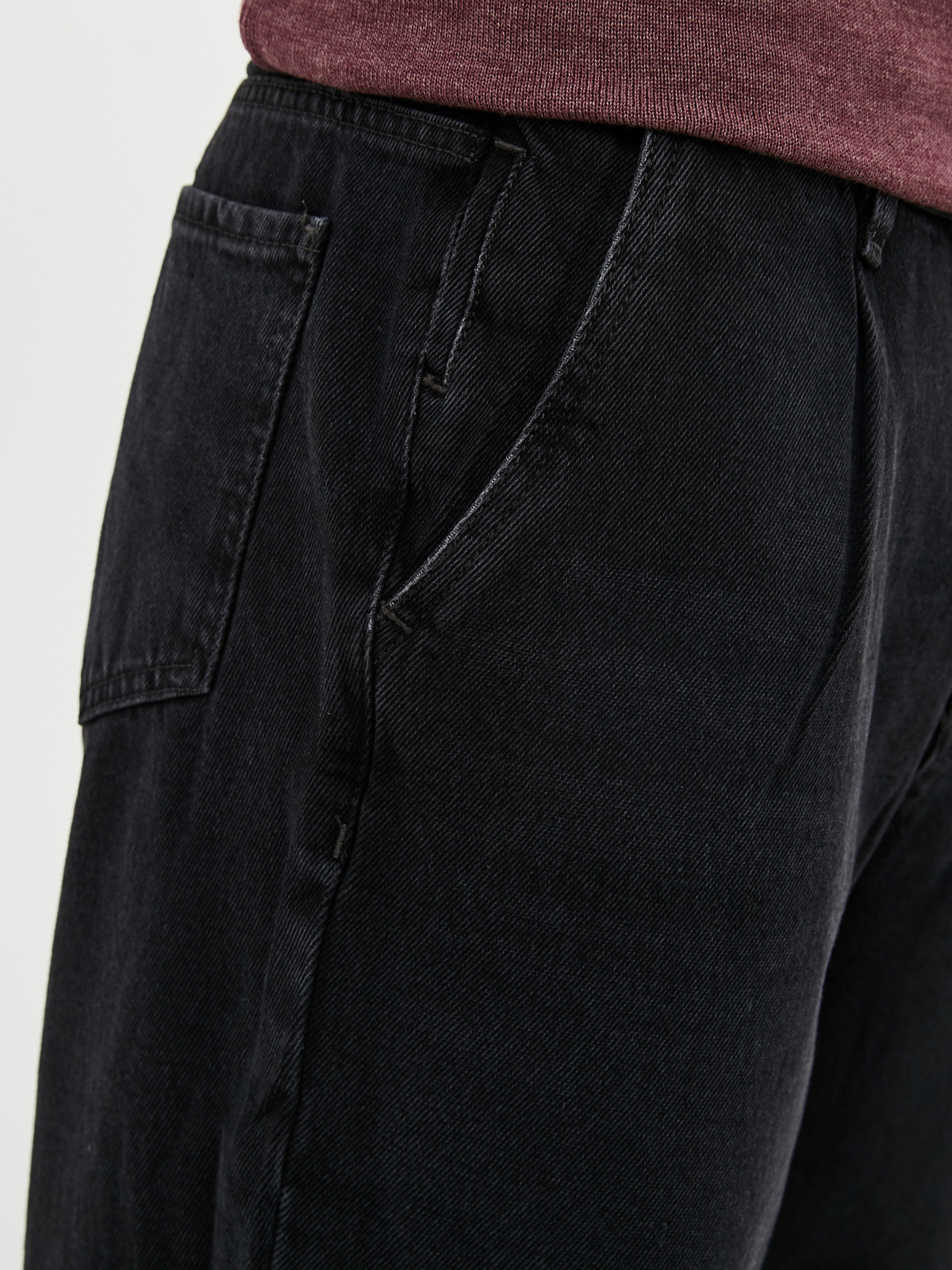 Мужские джинсы мом или в данном случае джинсы-бананы из хлопкового денима с "вареным" эффектом в светлых тонах. Бананы с защипами на талии и объемного силуэта на бедрах выполнены из плотного 100% хлопка, что позволяет телу дышать. Плотный хлопок отлично держит форму и не вытягивается. Модель на рост 176-182 см с четырьмя карманами с отрезным бочком спереди и лаконичными карманами сзади. Застёжка на молнию и болт-пуговицу. С чем носить данную модель зависит от телосложения мужчины, но следует помнить о том, что данный фасон визуально укорачивает ноги. Джинсы с фирменным узким лейблом "MOSSMORE" на внутренней стороне ширинки. Размер на моделях 30, рост (сер) 186 и (св-сер, св-син) 183 см.