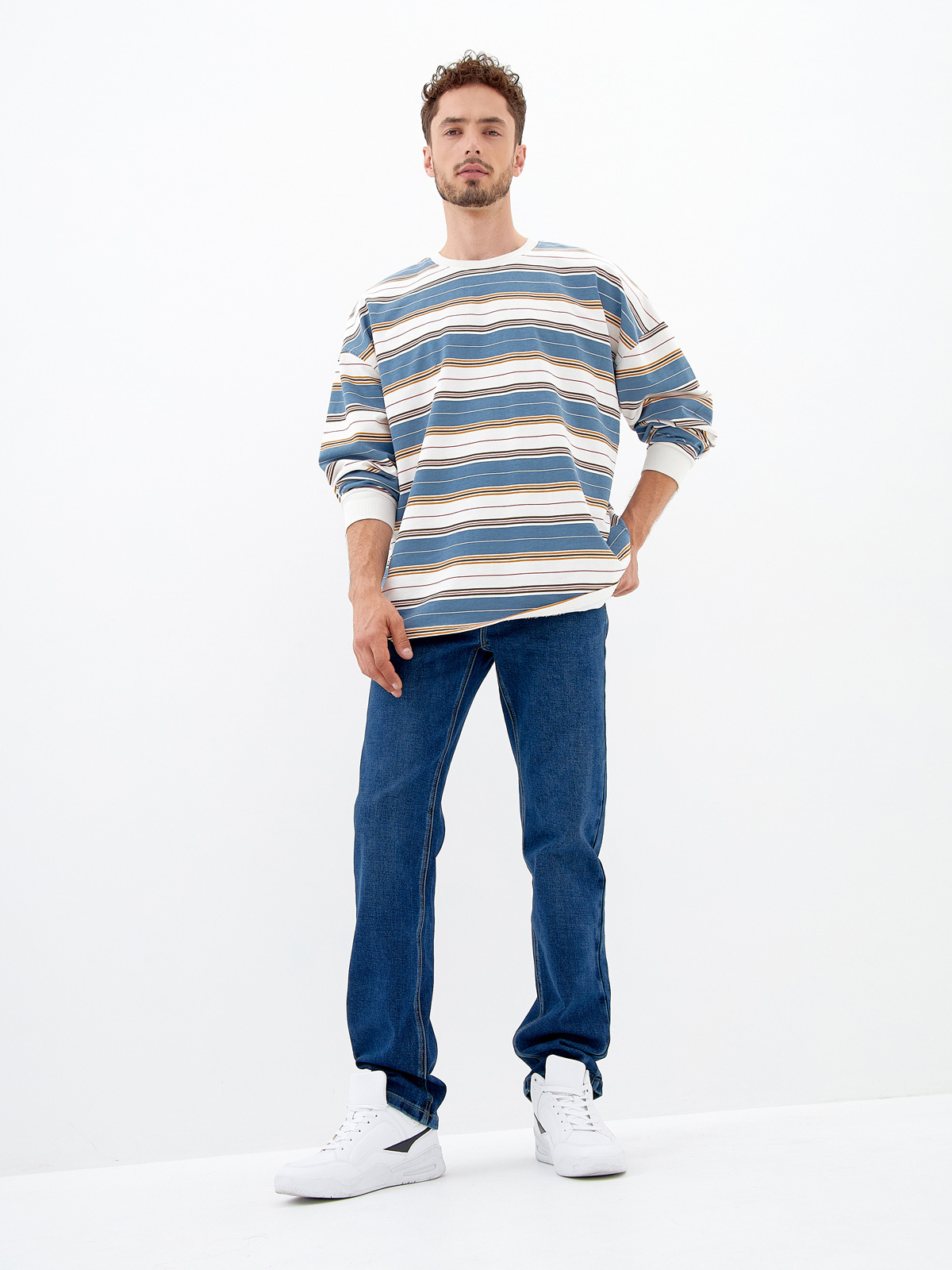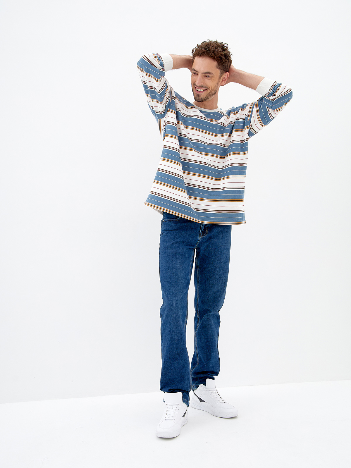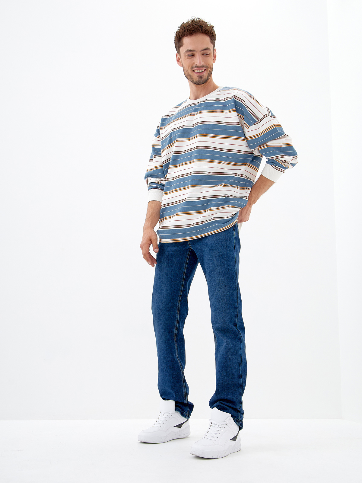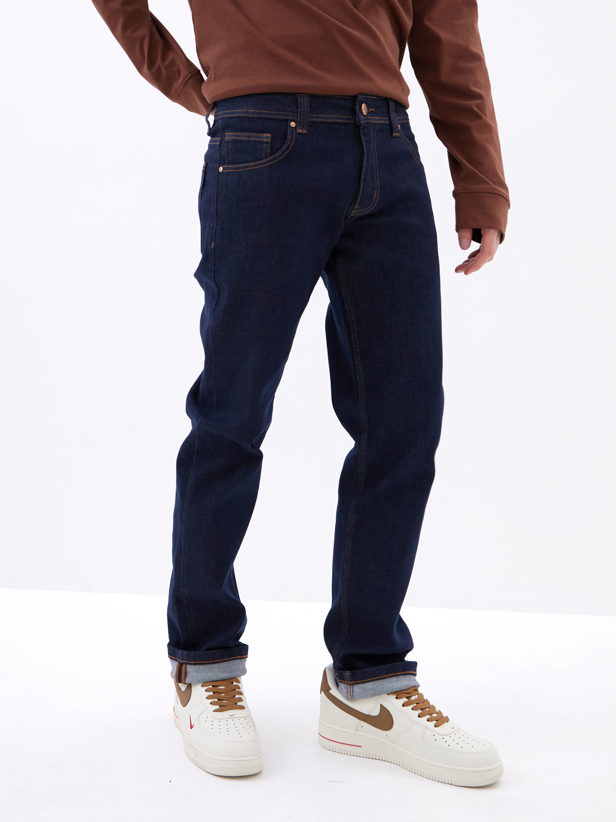 Джинсы широкого кроя из плотного хлопкового денима имеют несколько ростовок. Плотная ткань с добавлением эластана обеспечивает комфортную посадку и свободу движений. Широкие штанины с прямым силуэтом визуально вытягивают и стройнят фигуру. Контрастная строчка насыщенного красного цвета по внутреннему шву брючин добавляет динамики и подчеркивает качество изделия. Особенности: небольшие потертости денима, классический пятикарманный крой, шлевки для ремня и фирменные заклепки. Декоративные фигурные строчки на задних карманах придают джинсам современный вид. Фирменный узкий лейбл на внутренней стороне ширинки подчеркивает фирменный дизайн.Детали: широкий прямой крой, классическая посадка на талии, застёжка на металлическую молнию и пуговицу, пять карманов, шлёвки для ремня.