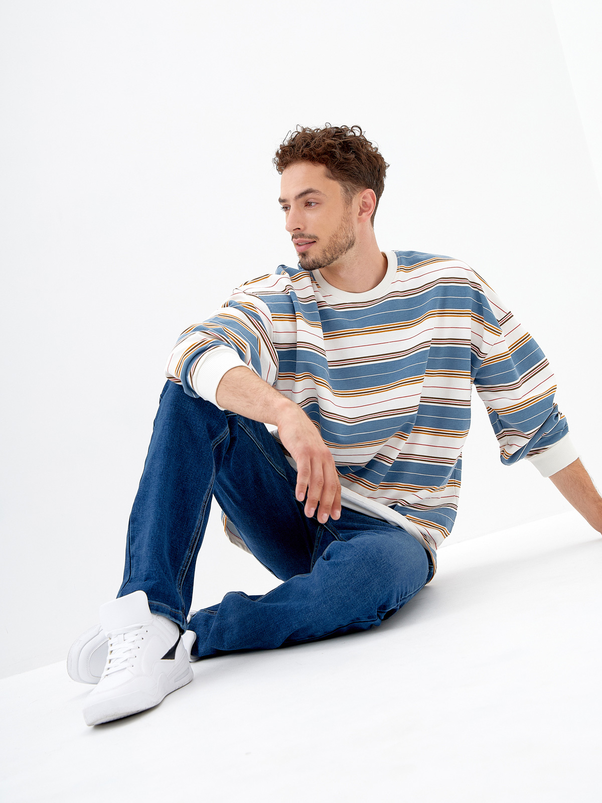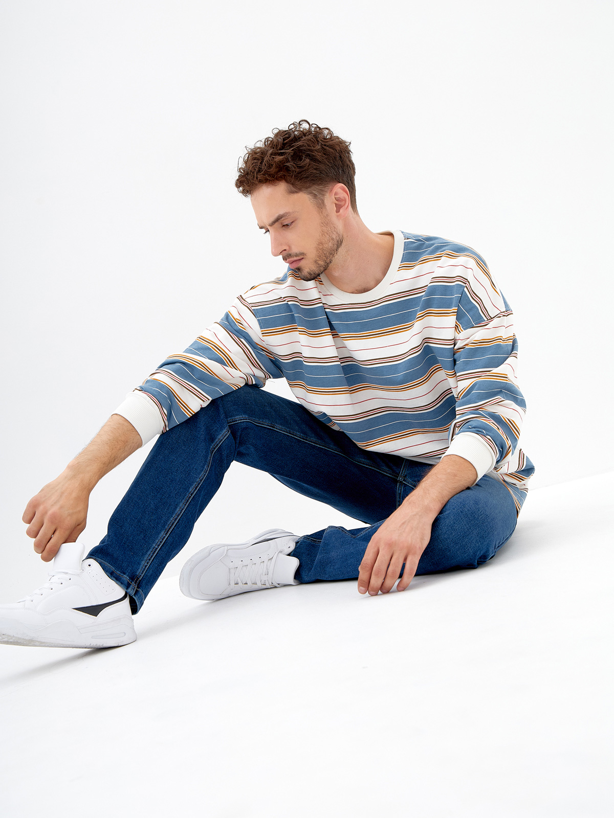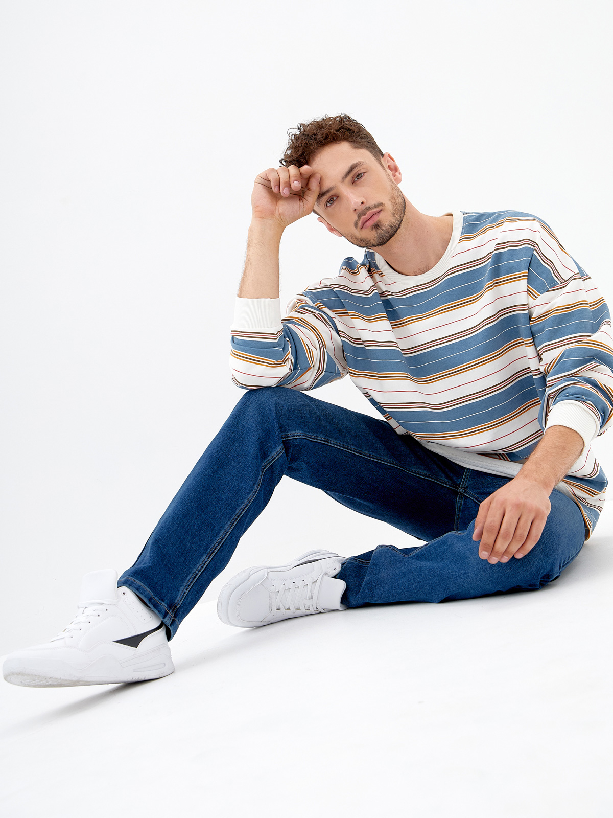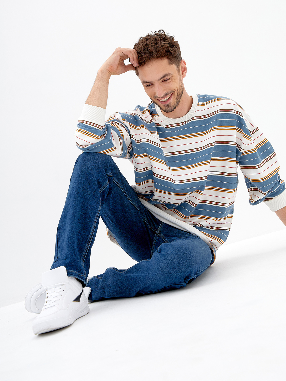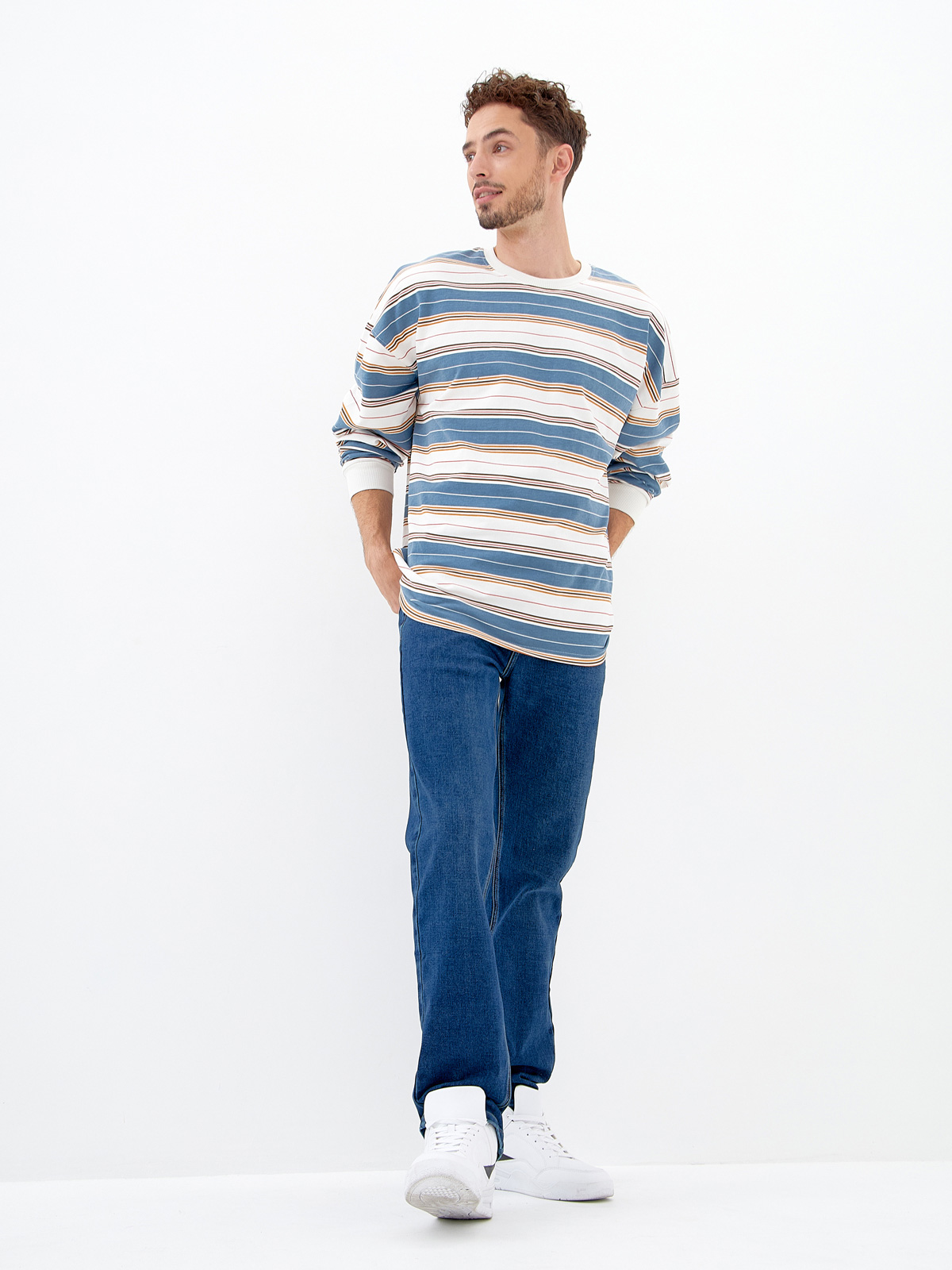 Джинсы широкого кроя из плотного хлопкового денима имеют несколько ростовок. Плотная ткань с добавлением эластана обеспечивает комфортную посадку и свободу движений. Широкие штанины с прямым силуэтом визуально вытягивают и стройнят фигуру. Контрастная строчка насыщенного красного цвета по внутреннему шву брючин добавляет динамики и подчеркивает качество изделия. Особенности: небольшие потертости денима, классический пятикарманный крой, шлевки для ремня и фирменные заклепки. Декоративные фигурные строчки на задних карманах придают джинсам современный вид. Фирменный узкий лейбл на внутренней стороне ширинки подчеркивает фирменный дизайн.Детали: широкий прямой крой, классическая посадка на талии, застёжка на металлическую молнию и пуговицу, пять карманов, шлёвки для ремня.