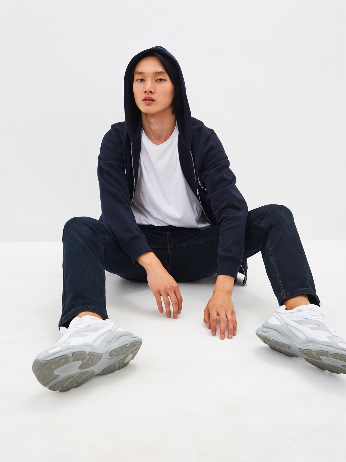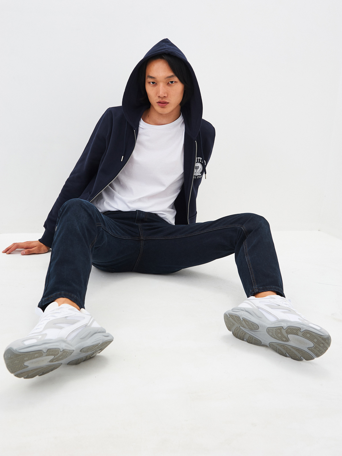 Джинсы легко сочетаются с объёмной курткой, толстовкой, ремнём и любимой обувью, создавая стильный и комфортный образ. На талии — шлёвки для ремня, застёжка на молнию и пуговицу, что делает модель удобной и функциональной.