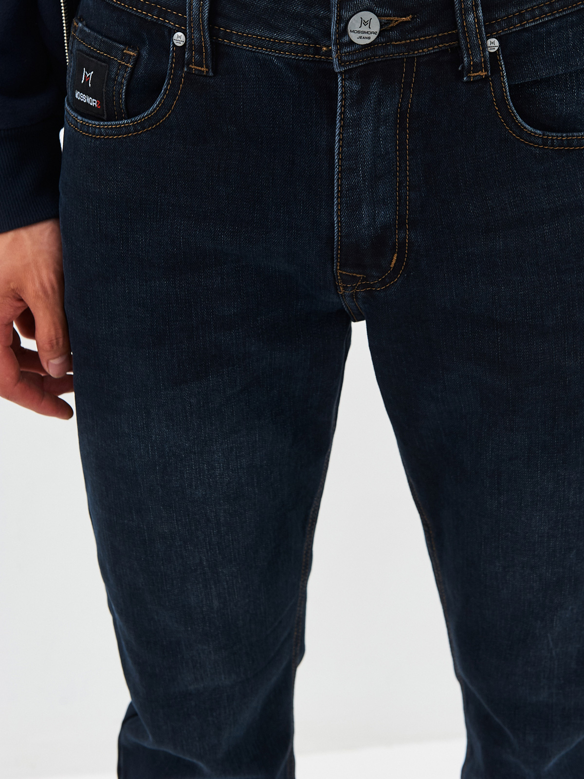 Прямые темные джинсы Mossmore MR2614F — универсальная и практичная модель для демисезона и зимы. Они выполнены из плотного хлопкового денима с эластаном, что делает их стрейчевыми, удобными в носке и устойчивыми к деформации даже после частых стирок.