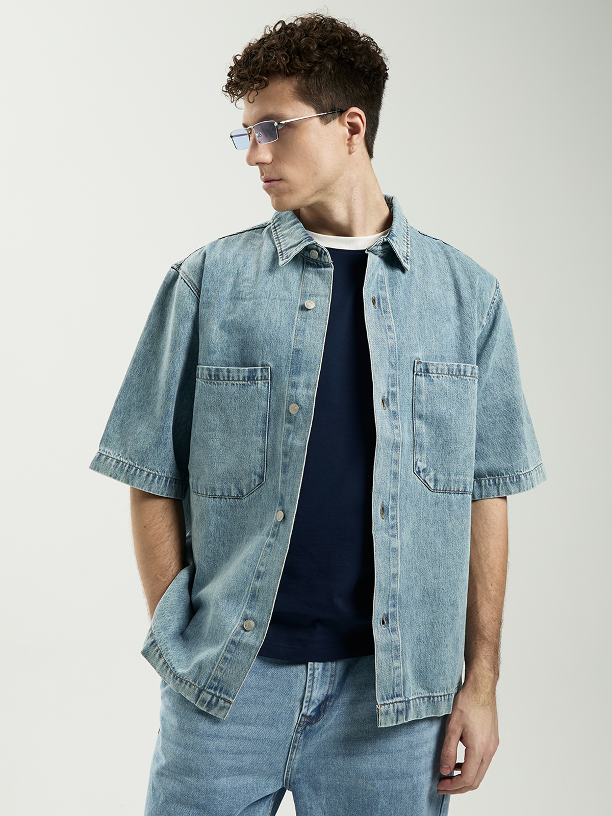 Мужская рубашка с короткими рукавами из 100% хлопкового денима. Изготовленная из высококачественного хлопка, она обеспечивает превосходную воздухопроницаемость и легкость при носке. Уникальный вареный эффект придаёт рубашке характер и индивидуальность. Такой процесс обработки ткани создает интересные переходы и текстуры, что делает каждую рубашку уникальной. Умеренно свободная посадка позволяет чувствовать себя максимально просторно. Спущенная линия плеча придает рубашке расслабленный и ненавязчивый стиль, добавляя комфорта и свободной посадки. Данная модель имеет классический отложной воротник и застежку на кнопки, что делает ее удобной в использовании, а также добавляет стильный акцент к дизайну. Два нагрудных кармана добавляют практичность и стильность рубашке. Они идеально подходят для хранения мелочей и придают образу дополнительный объем и интерес. Петля на спинке не только служит функциональным элементом, позволяющим удобно повесить рубашку, но и привносит дизайну стильный акцент.