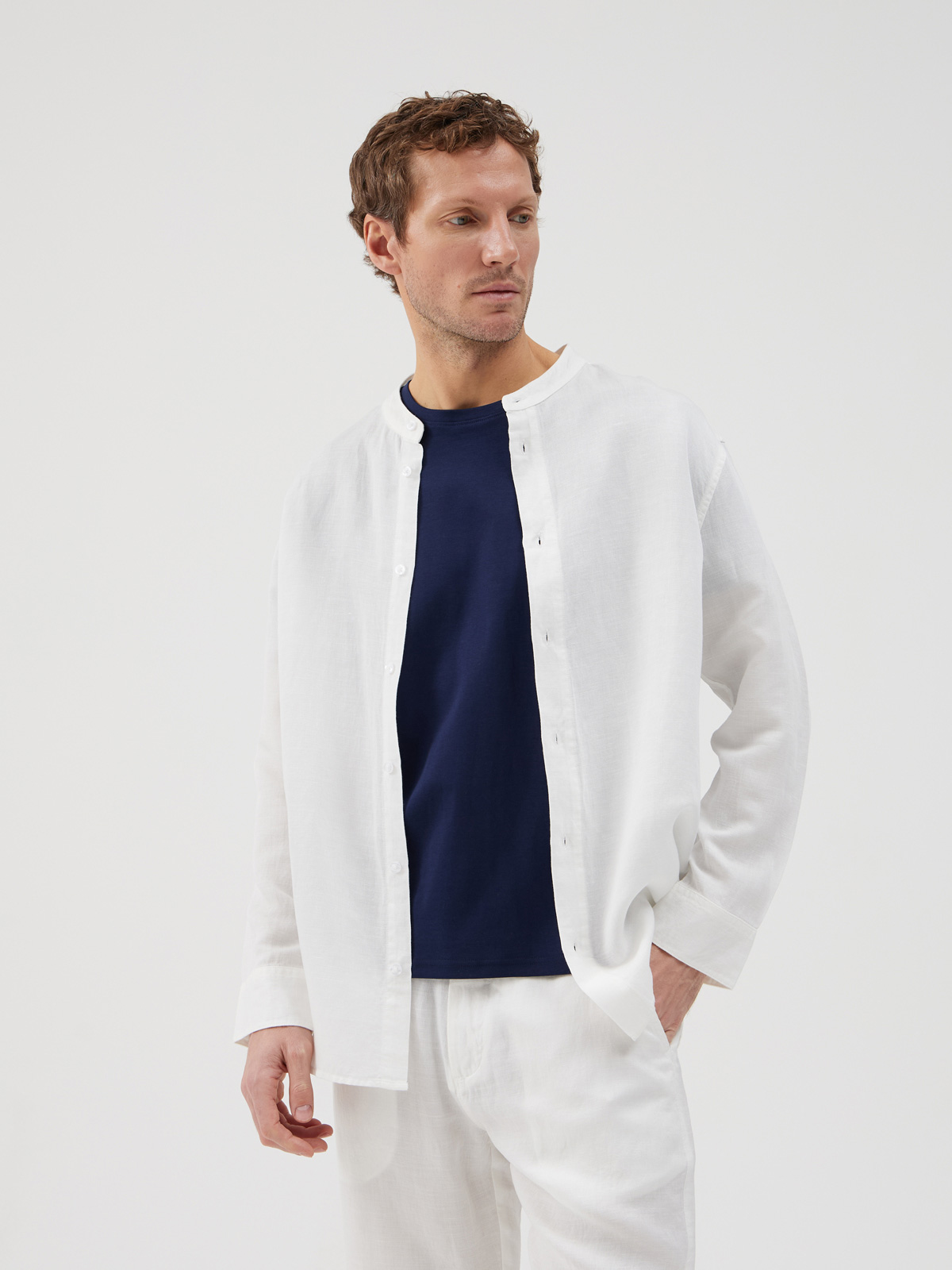 Рубашка мужская с длинными рукавами выполнена из высококачественной смесовой ткани, состоящей из льна и тенсела. Лен известен своими охлаждающими свойствами, отличной воздухопроницаемостью и прочностью, в то время как тенсел добавляет мягкость, гладкость и естественный блеск, обеспечивая комфорт в ношении. Ее дизайн выделяется воротником-стойкой и планкой с застёжкой на пуговицы, что добавляет легкости и изящества. Эта рубашка идеально подходит для теплой погоды благодаря дышащему материалу, который обеспечивает комфорт и приятные прикосновения. Свободный крой и увеличенный объём придаст расслабленности любому образу. Сочетание льна и тенсела делает рубашку невероятно легкой и дышащей. Рубашка представлена в нежных пастельных оттенках, таких как светло-голубой, белый, бежевый и другие. Эти цвета идеально подходят для создания легких и свежих образов, добавляя мягкость и элегантность. Эта рубашка легко комбинируется с разнообразными типами одежды. Она прекрасно смотрится в сочетании с джинсами или брюками.