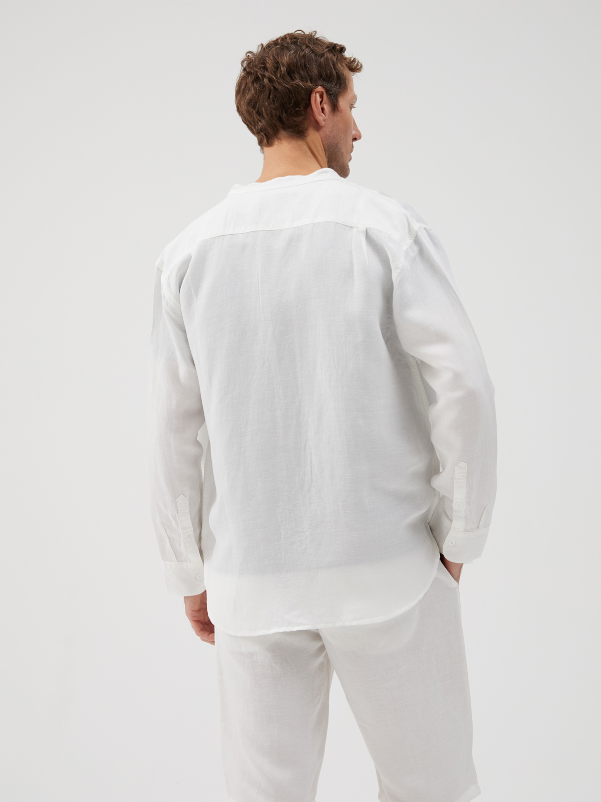 Рубашка мужская с длинными рукавами выполнена из высококачественной смесовой ткани, состоящей из льна и тенсела. Лен известен своими охлаждающими свойствами, отличной воздухопроницаемостью и прочностью, в то время как тенсел добавляет мягкость, гладкость и естественный блеск, обеспечивая комфорт в ношении. Ее дизайн выделяется воротником-стойкой и планкой с застёжкой на пуговицы, что добавляет легкости и изящества. Эта рубашка идеально подходит для теплой погоды благодаря дышащему материалу, который обеспечивает комфорт и приятные прикосновения. Свободный крой и увеличенный объём придаст расслабленности любому образу. Сочетание льна и тенсела делает рубашку невероятно легкой и дышащей. Рубашка представлена в нежных пастельных оттенках, таких как светло-голубой, белый, бежевый и другие. Эти цвета идеально подходят для создания легких и свежих образов, добавляя мягкость и элегантность. Эта рубашка легко комбинируется с разнообразными типами одежды. Она прекрасно смотрится в сочетании с джинсами или брюками.