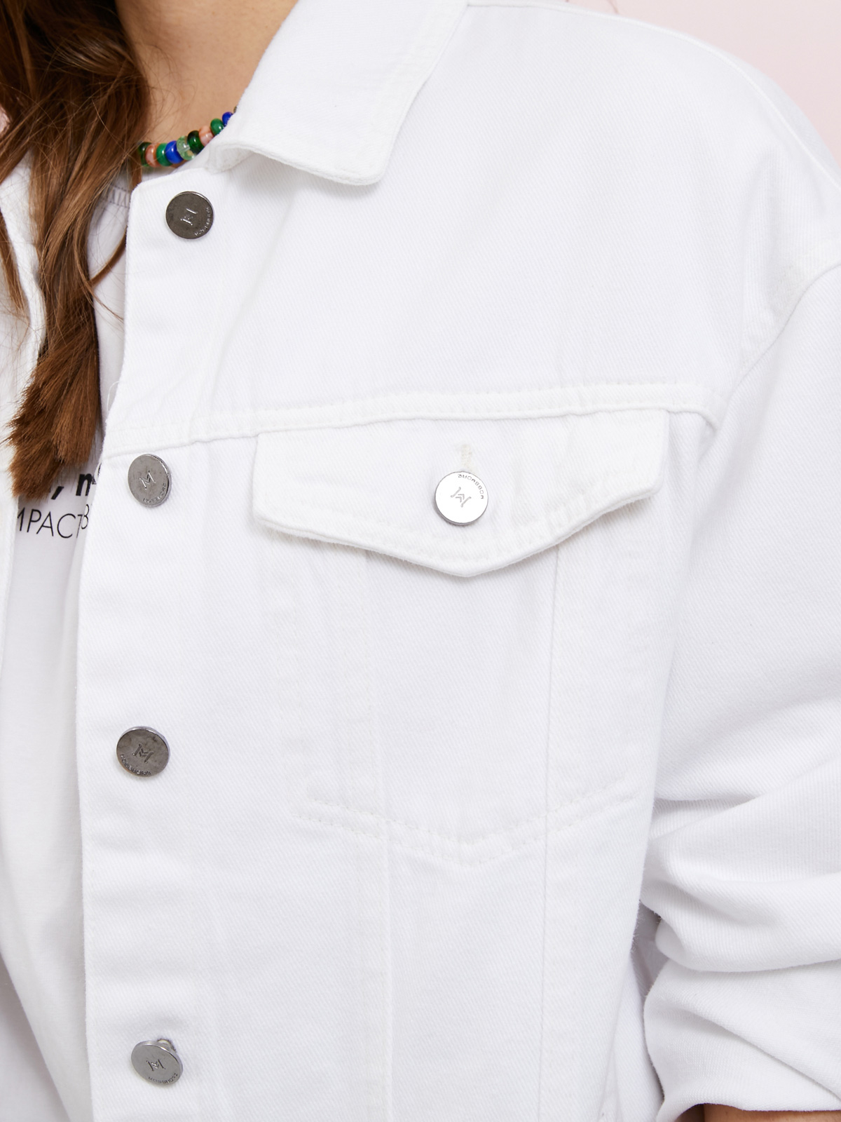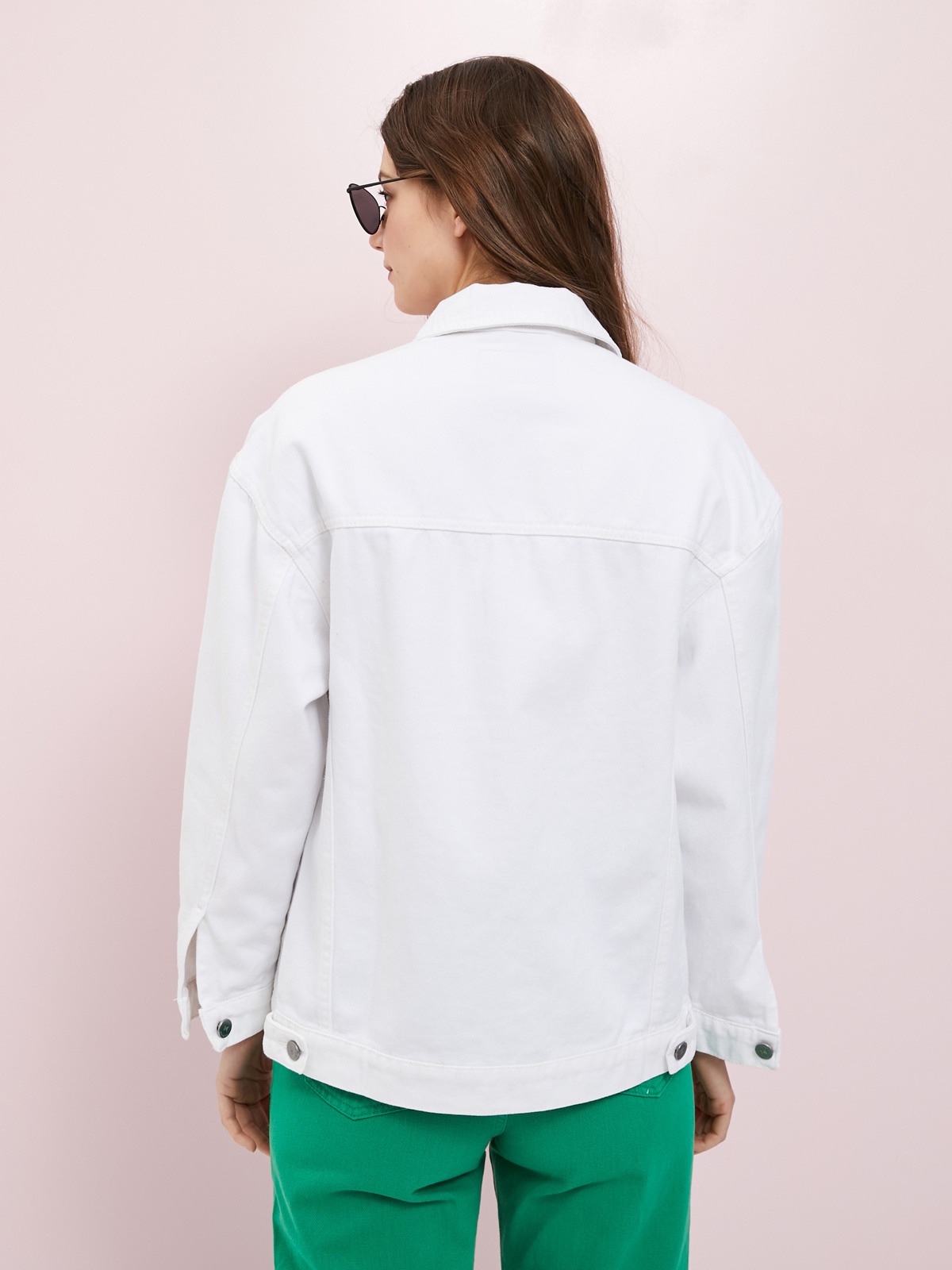 Куртка удлиненного силуэта оверсайз из хлопкового цветного денима средней плотности с отложным воротником и прорезными боковыми карманами. Данная модель будет ярким акцентом для весеннего гардероба. Куртка с длинными рукавами со спущенной линией плеча с манжетами с застёжкой на металлические пуговицы и нагрудными карманами. Застёжка на металлические пуговицы. Размер на модели 42, рост 175 см.