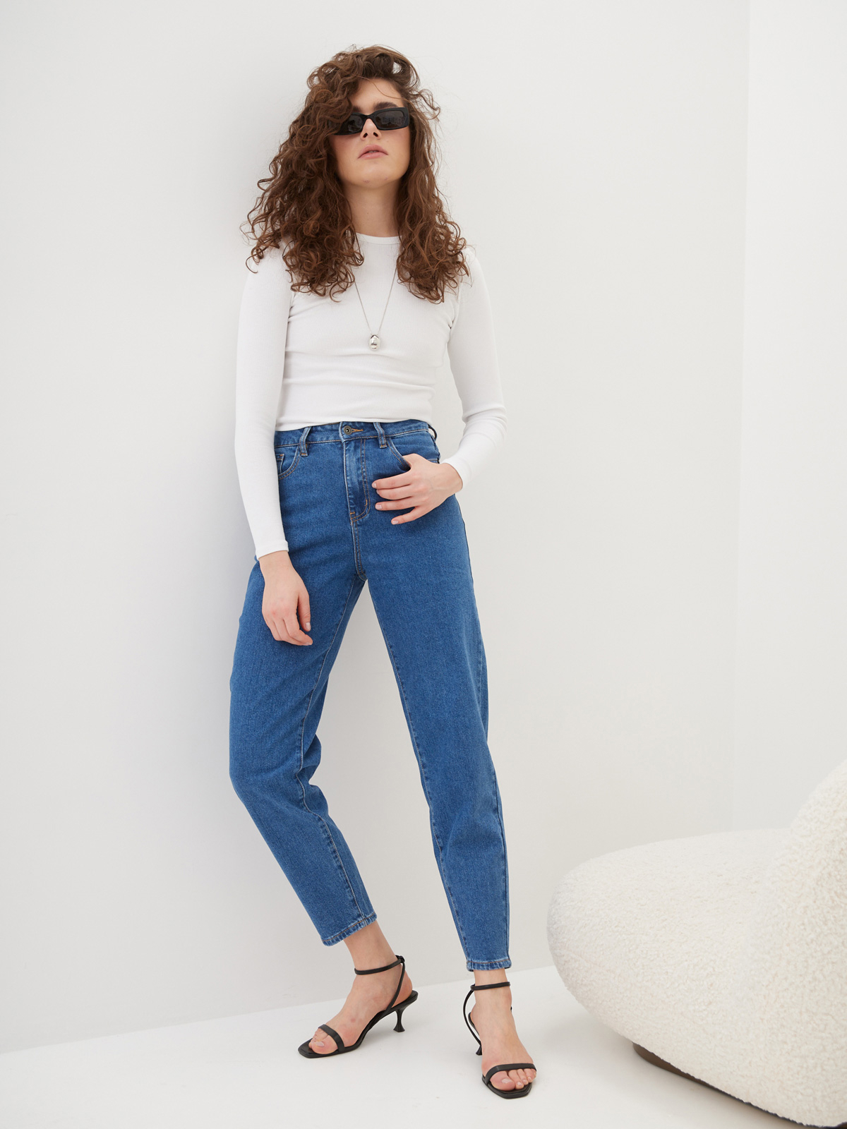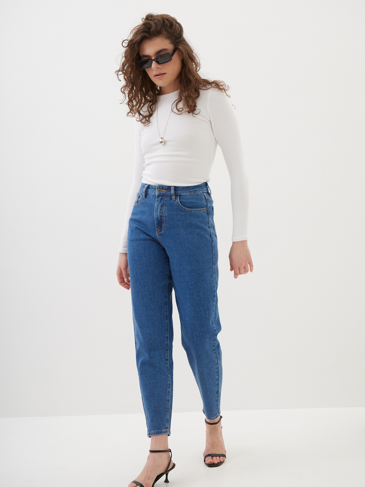 Женские джинсы mom fit с высокой посадкой