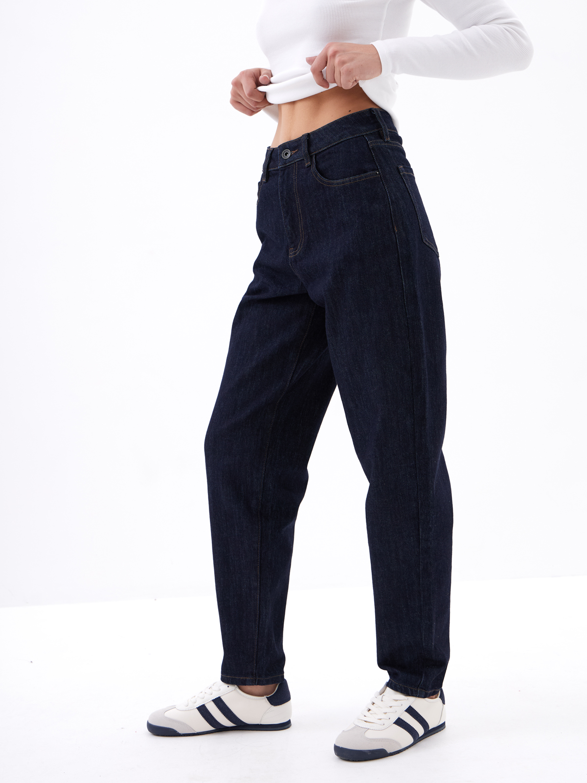 Джинсы силуэта мом на рост 158-164 см выполнены из хлопкового денима с добавлением эластана в нескольких оттенках синего денима. Благодаря смешению натурального хлопка с эластаном, брюки обладают достаточной растяжимостью, обеспечивая комфорт и свободу движений. Эти стильные синие джинсы в силуэте "мом" создают непринужденный и расслабленный образ. Свободный крой на талии с высокой посадкой и слегка зауженными книзу штанинами визуально вытягивает фигуру, подчеркивая линию бедер. Универсальный синий цвет и практичный крой делают эти джинсы-мом практичным и выгодным приобретением для любого гардероба. Чтобы выглядеть стильно, можно подвернуть низ брючин, обнажив лодыжку. Широкая линейка размеров поможет подобрать нужный размер по фигуре. Особенности джинсов мом: высокая посадка, которая подчеркнёт талию и создаст женственный силуэт.