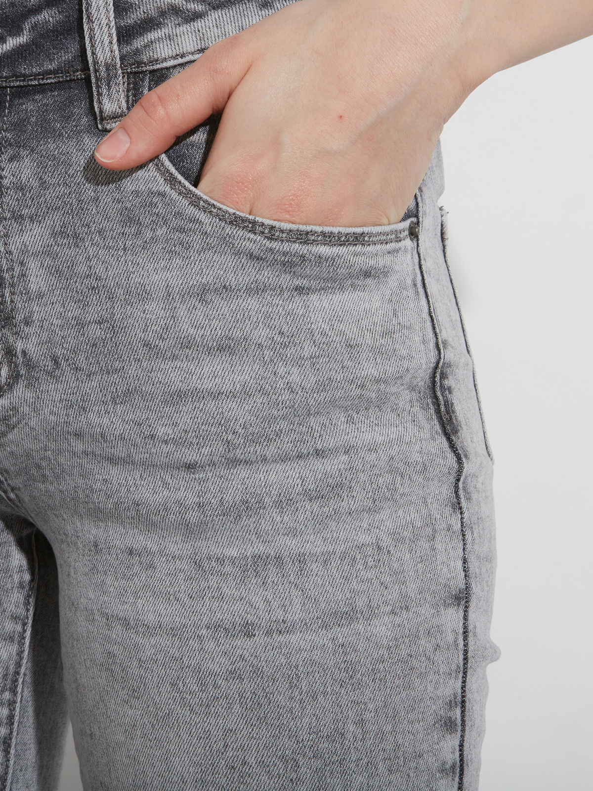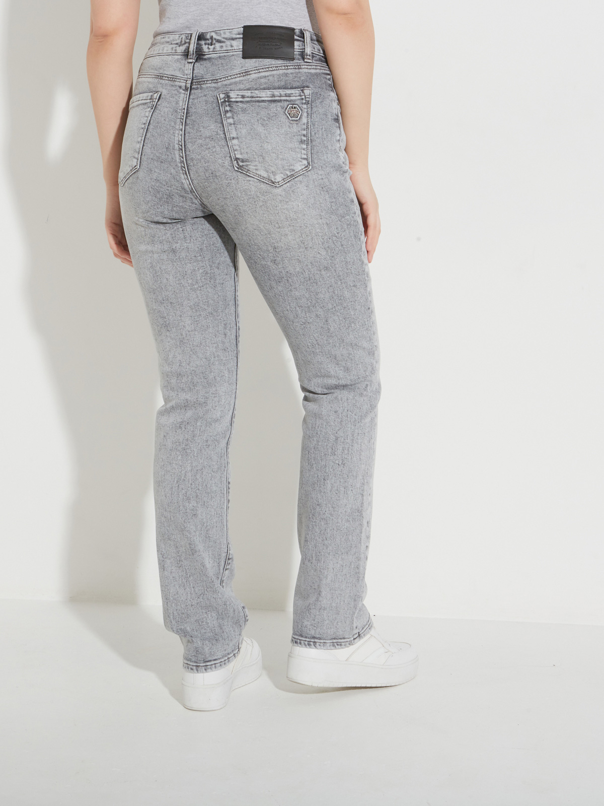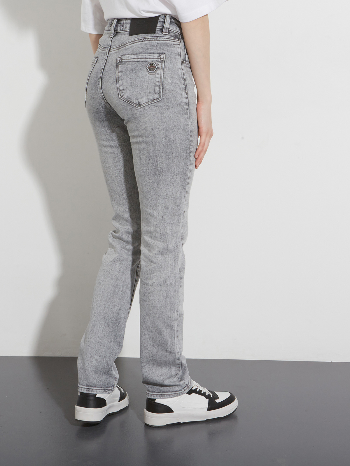 Прямые джинсы с широким размерным рядом из денима с эластичностью комфорт стрейч и декорированным карманом сзади. Модель на рост 170-176 см с пятью карманами с ручной обработкой потертостей краев карманов сзади. Универсальные женские джинсы отлично подойдут для повседневной носки, прогулок и активного отдыха. Застёжка на металлическую молнию и пуговицу. Размер на модели 30, рост 170 см.