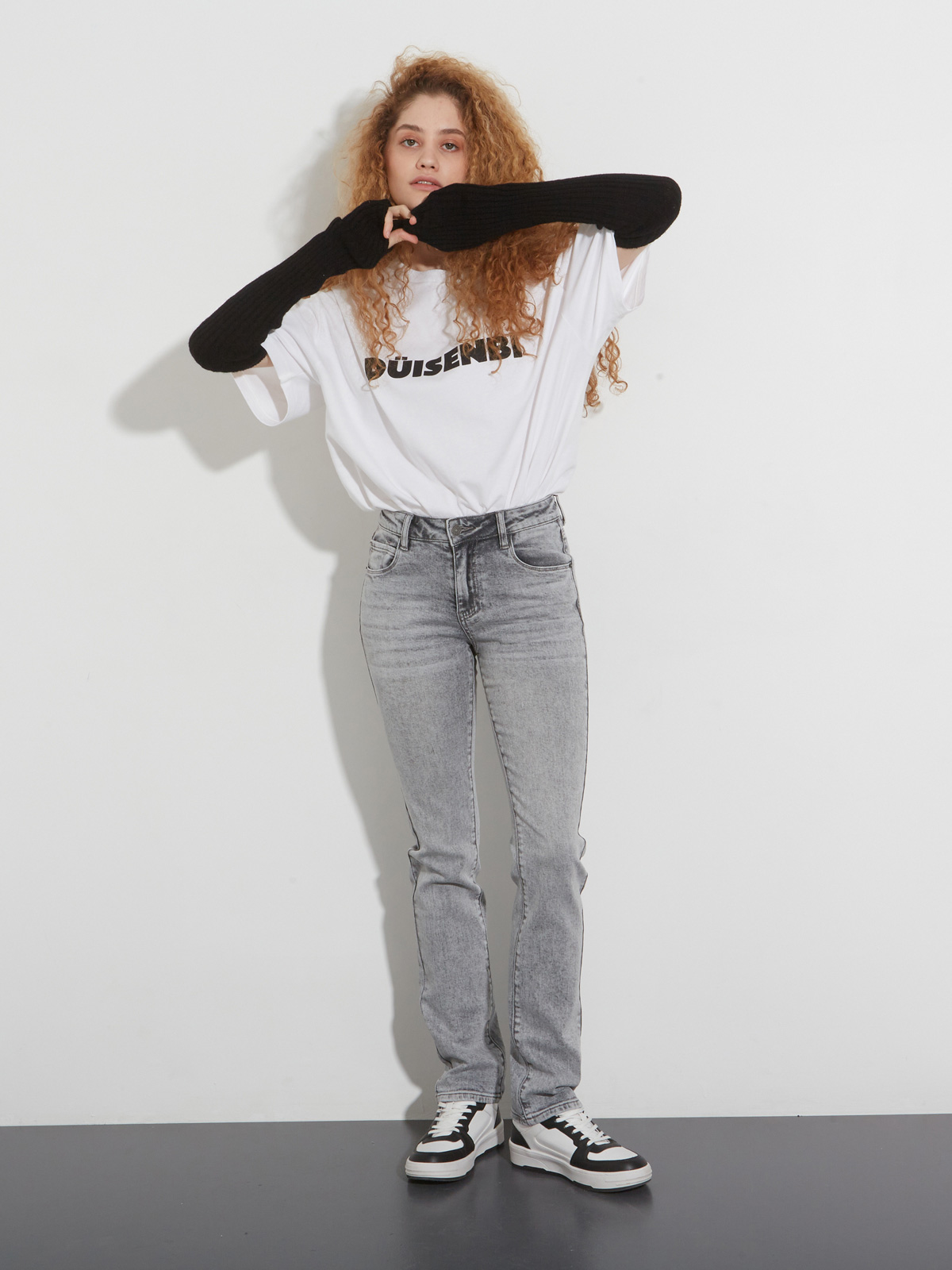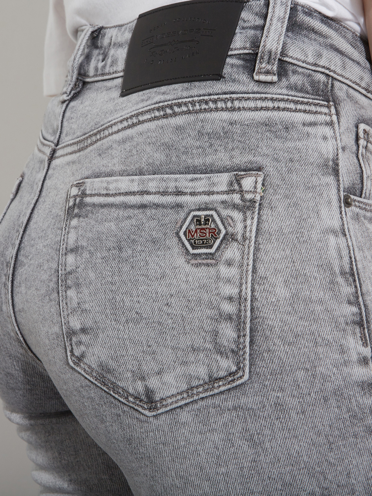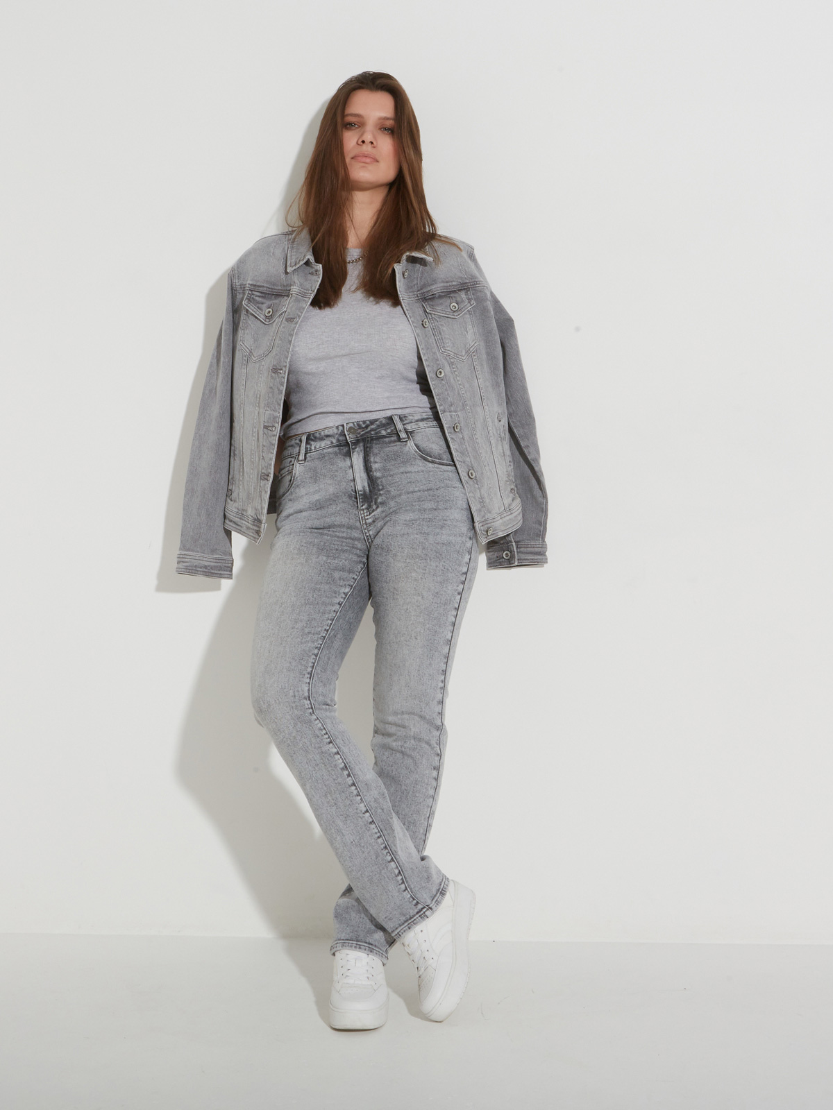 Прямые джинсы с широким размерным рядом из денима с эластичностью комфорт стрейч и декорированным карманом сзади. Модель на рост 170-176 см с пятью карманами с ручной обработкой потертостей краев карманов сзади. Универсальные женские джинсы отлично подойдут для повседневной носки, прогулок и активного отдыха. Застёжка на металлическую молнию и пуговицу. Размер на модели 30, рост 170 см.