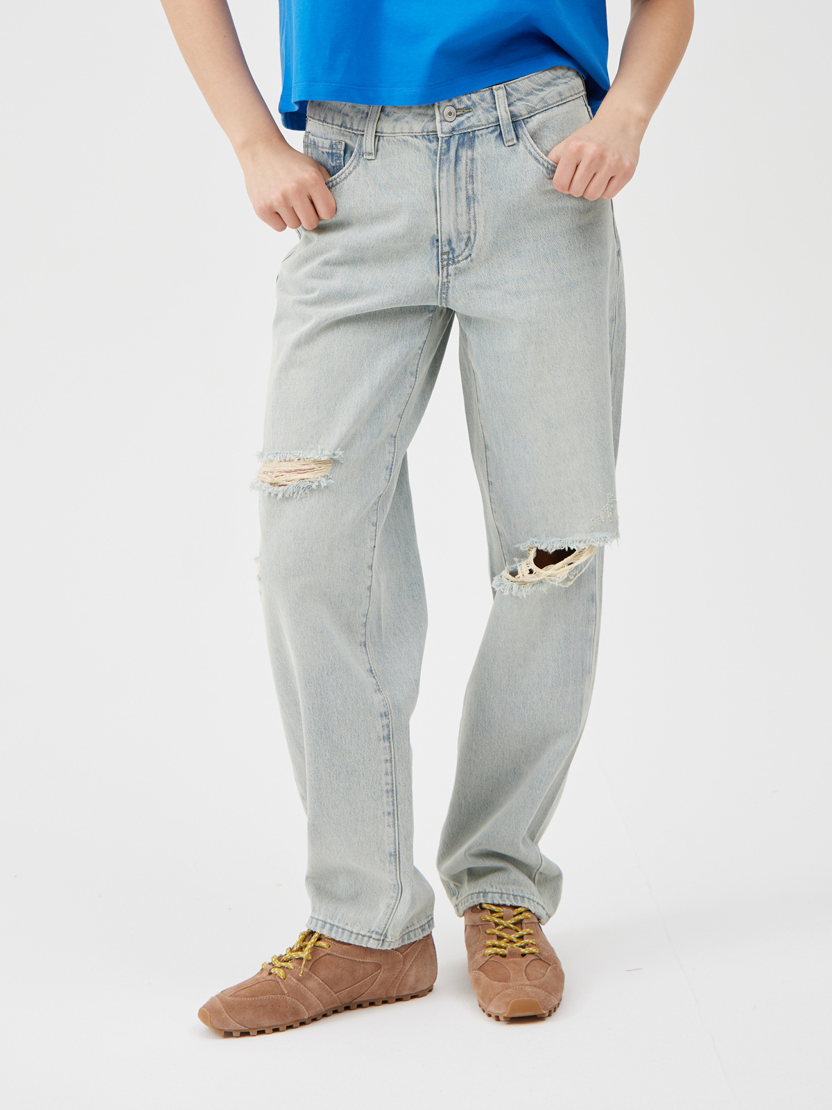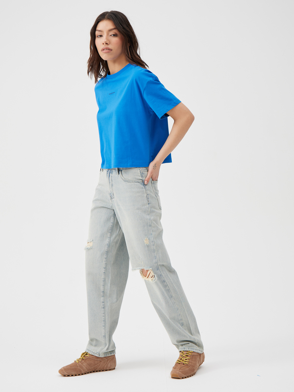 Джинсы багги на рост 164-170 см выполнены из 100% хлопкового денима. Высококачественный натуральный хлопковый деним обеспечивает отличную воздухопроницаемость и комфорт в носке. Багги легко определить по объёмному, даже мешковатому фасону. Данная модель отлично сидит на бёдрах за счёт своей формы. Деним имеет дополнительный выкрас с эффектом состаривания, создавая стильный вид, словно джинсы были любимыми на протяжении многих лет. Каждый экземпляр подвергся тщательной ручной обработке, что создает эффект естественного износа и стиля. Этот эффект добавляет глубину и индивидуальность каждой паре. Вы будете наслаждаться свободой движений и мягким материалом на протяжении всего дня. Потертости на краях карманов добавляют винтажной эстетики и индивидуальности. Дерзкие детали в виде рваных прорезей добавляют акцент и уличный шик. Эти элементы придают образу ноту бунта и неформальности, подчеркивая ваше стремление к самовыражению. Детали: широкий крой, пять карманов, шлевки для ремня, рваные прорези.