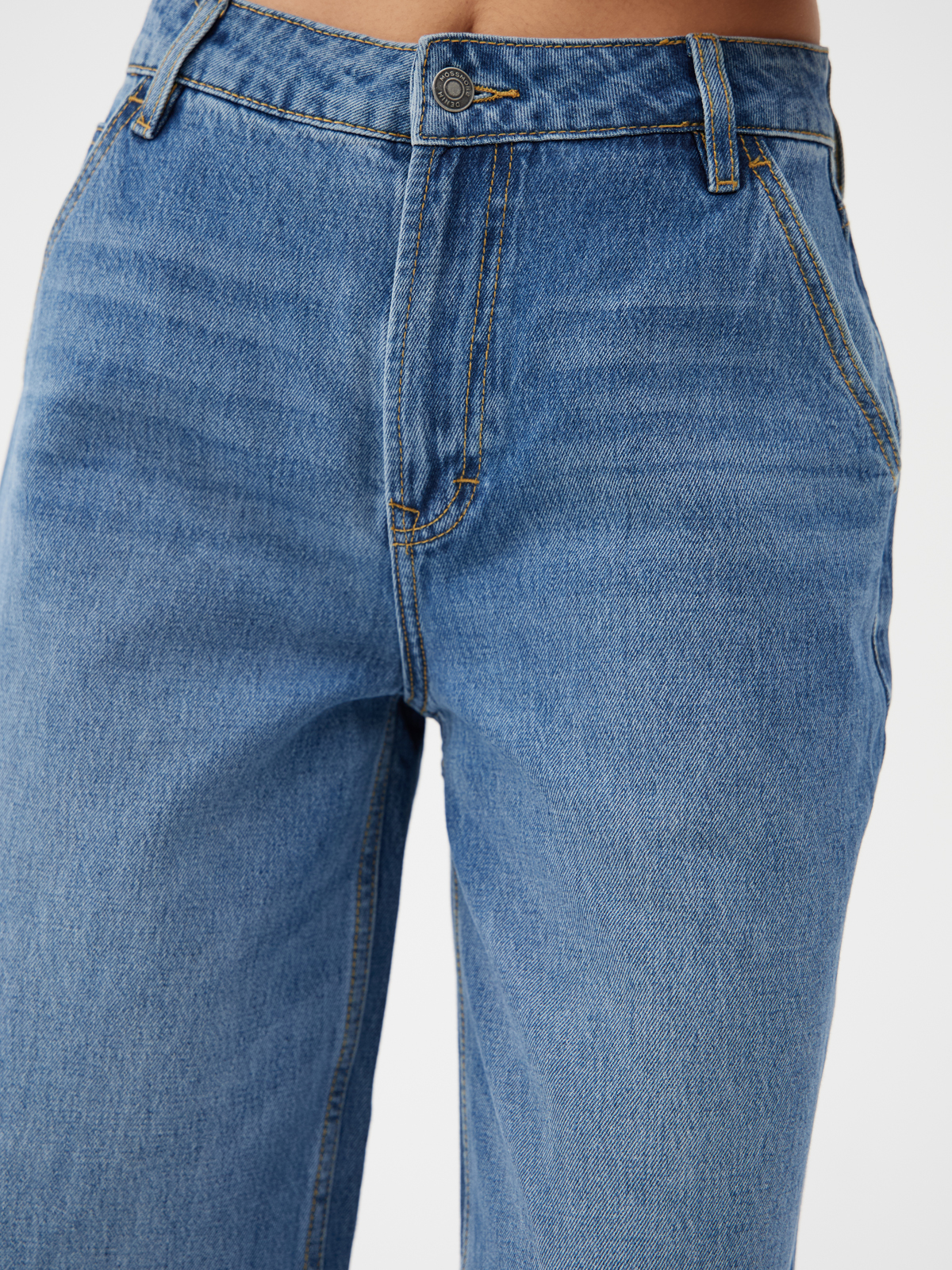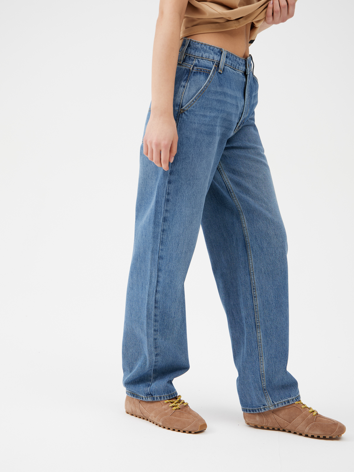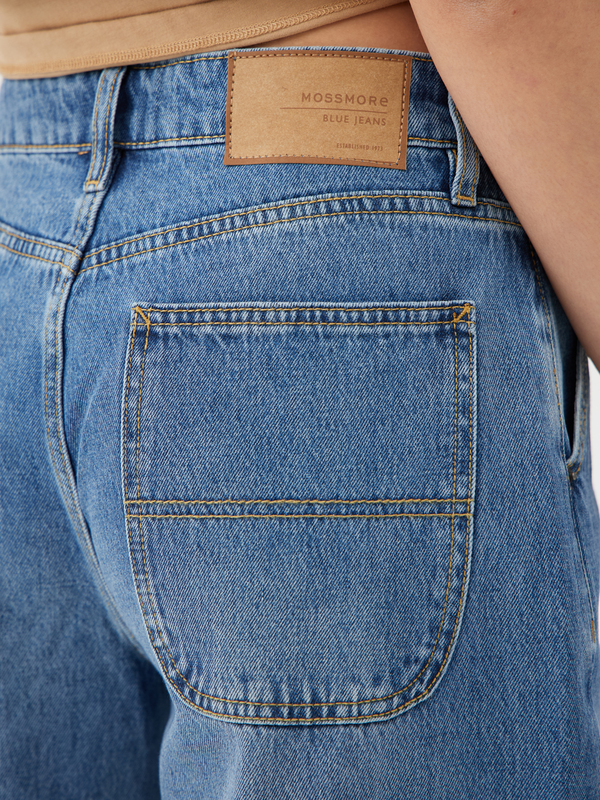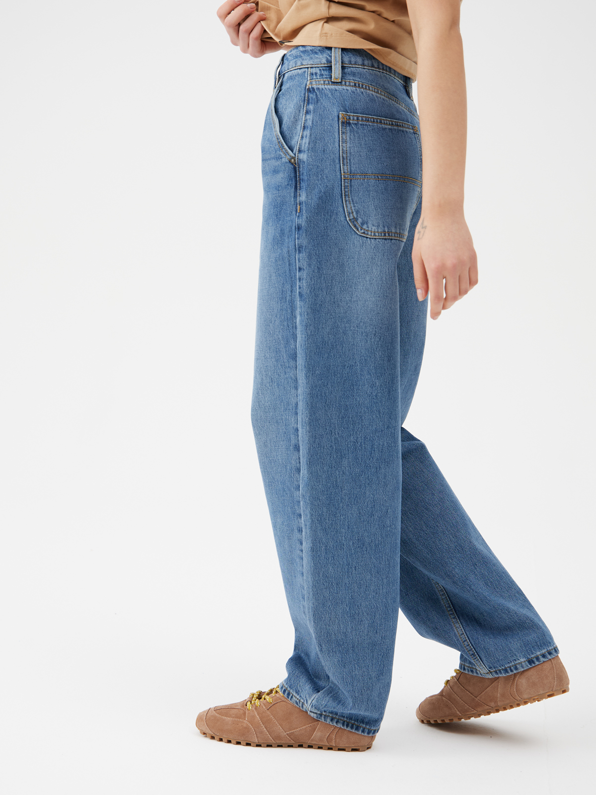 Джинсы багги на рост 164-170 см выполнены из 100% хлопкового денима, который обеспечивает их прочность, мягкость и комфорт. Такой деним отлично дышит, придавая комфорт при носке в любое время года и легко сохраняет форму даже после множества стирок. Багги легко определить по объёмному, даже мешковатому фасону. Данная модель отлично сидит на бёдрах за счёт своей формы. Яркая контрастная строчка придает модели стильный акцент и подчеркивает боковые карманы и швы, добавляя динамику и интерес в общий дизайн. Удобные боковые карманы скошенной формы не только придают модели особый шарм, но и добавляют функциональности. Голубой деним с эффектом варенки создает уникальный и выразительный вид джинсов, придавая им характер и индивидуальность. Легкие потертости по всей поверхности джинсов создают им стильный вид и эффект естественного износа. Это подчеркивает вашу творческую натуру и желание быть в тренде. Детали: широкий крой, пять карманов, шлевки для ремня, застёжка на металлическую молнию и пуговицу.
