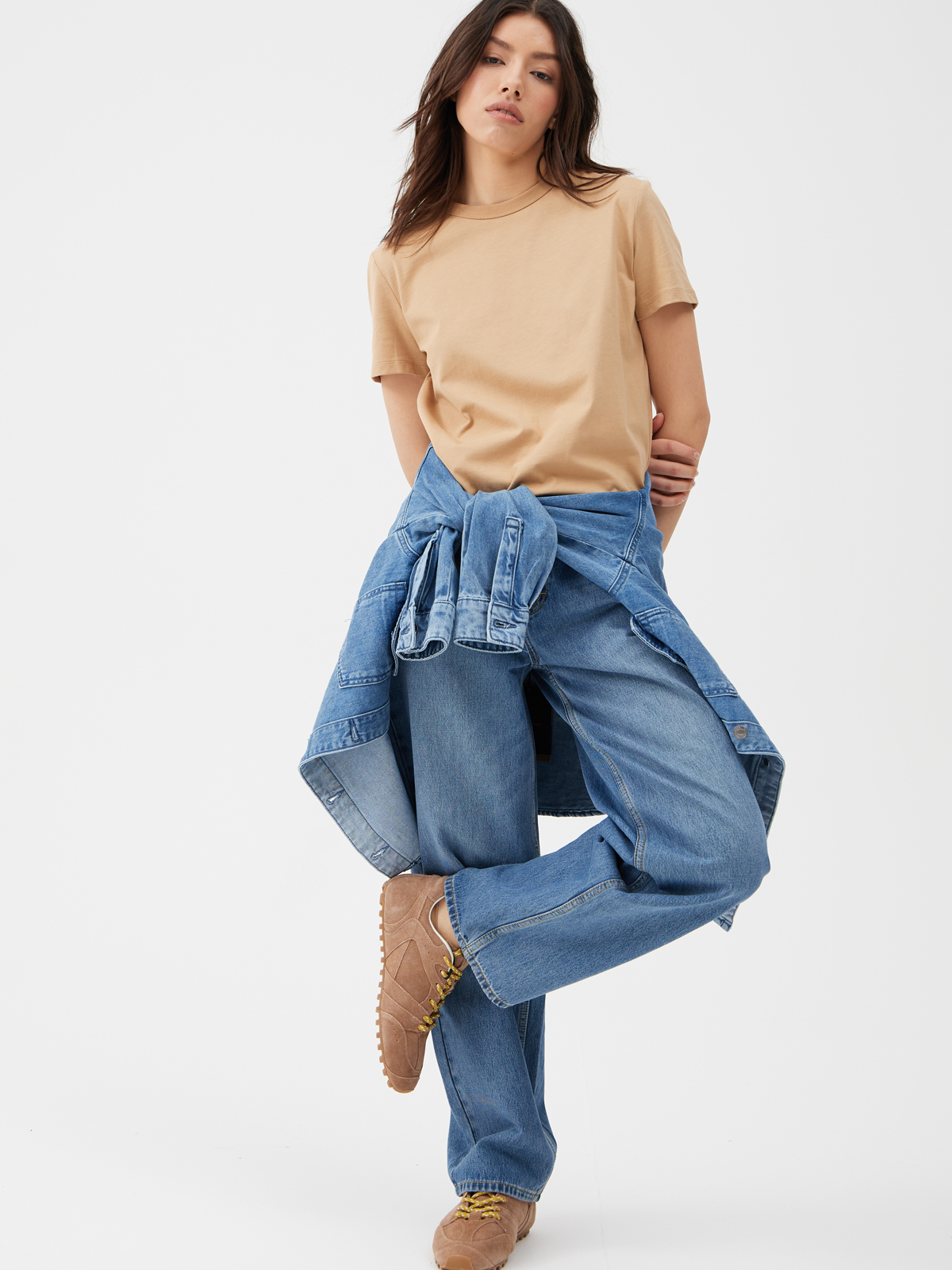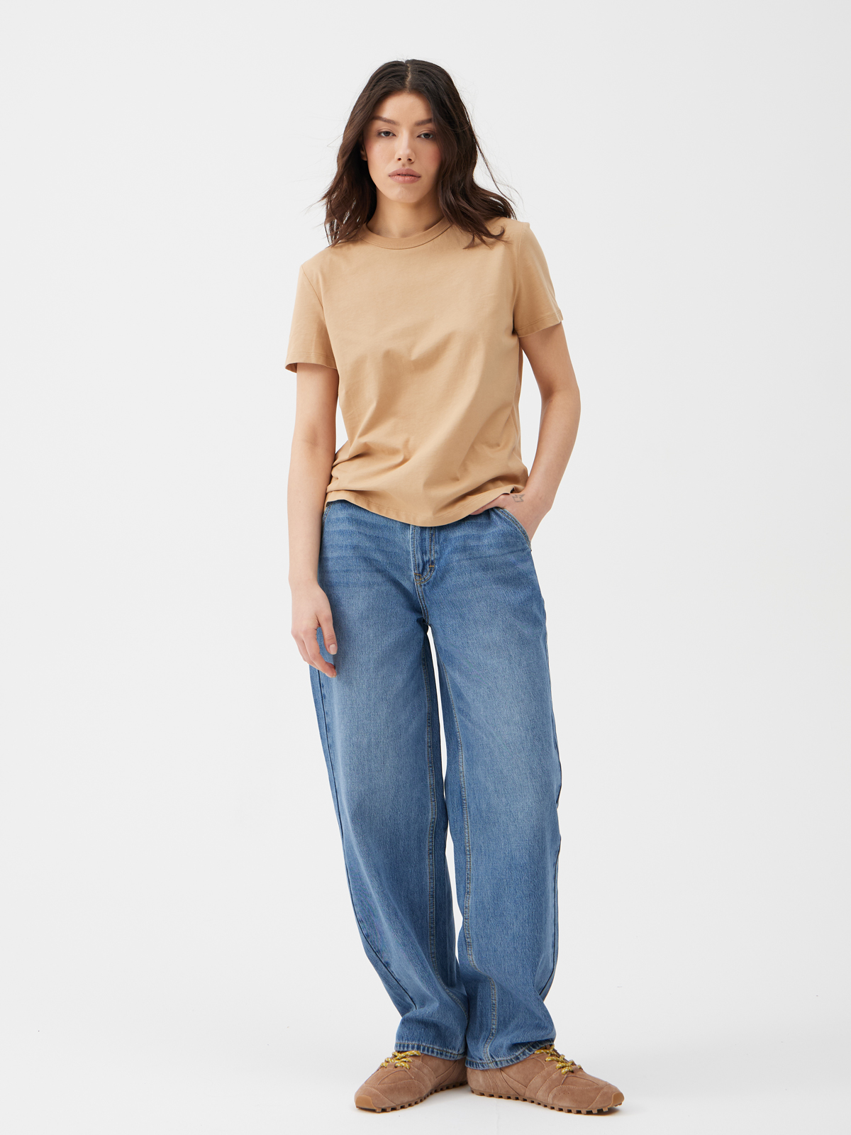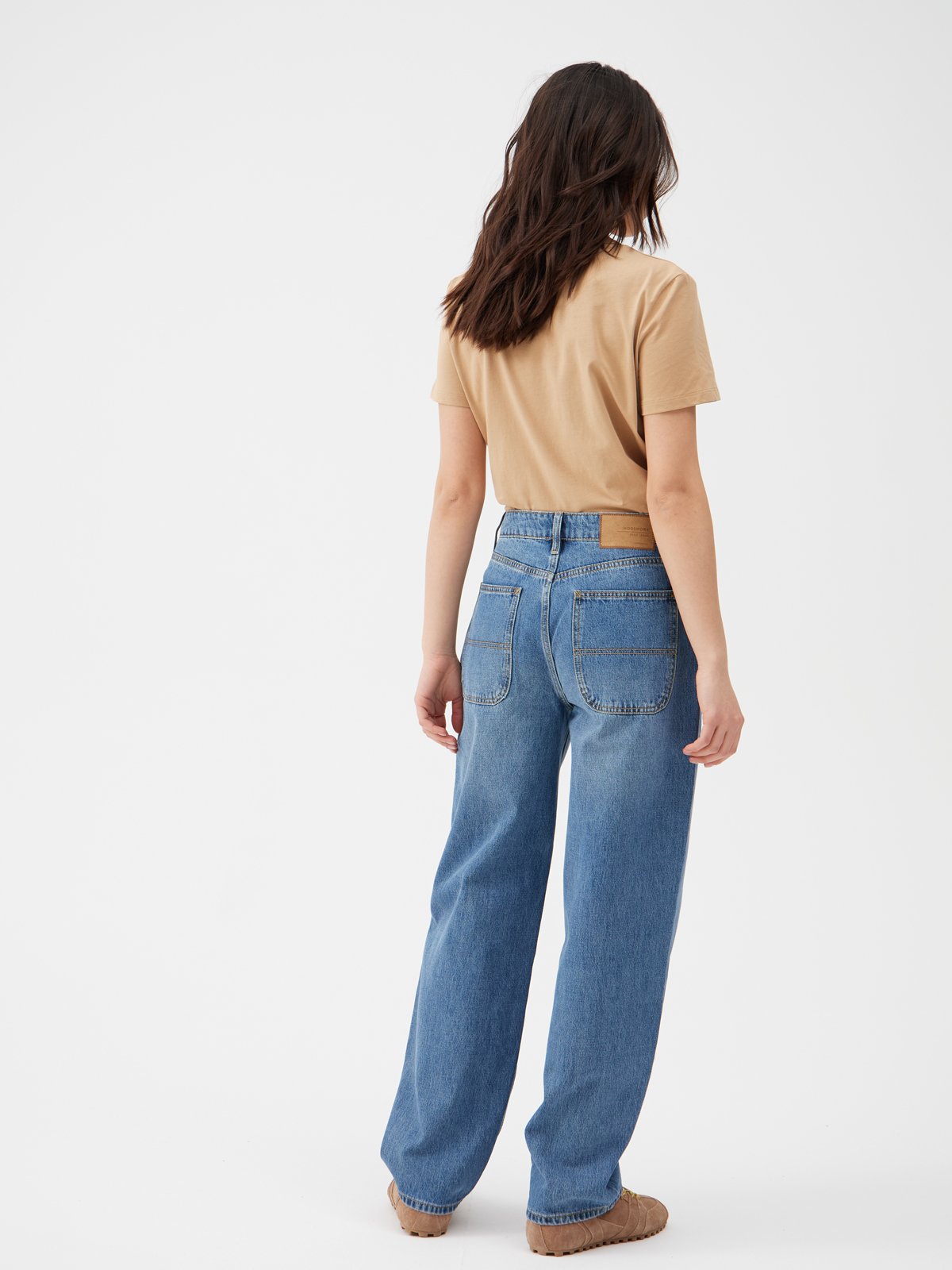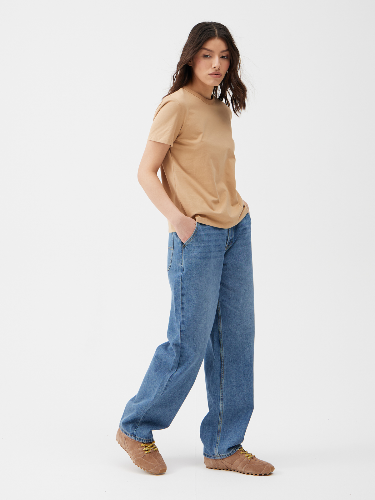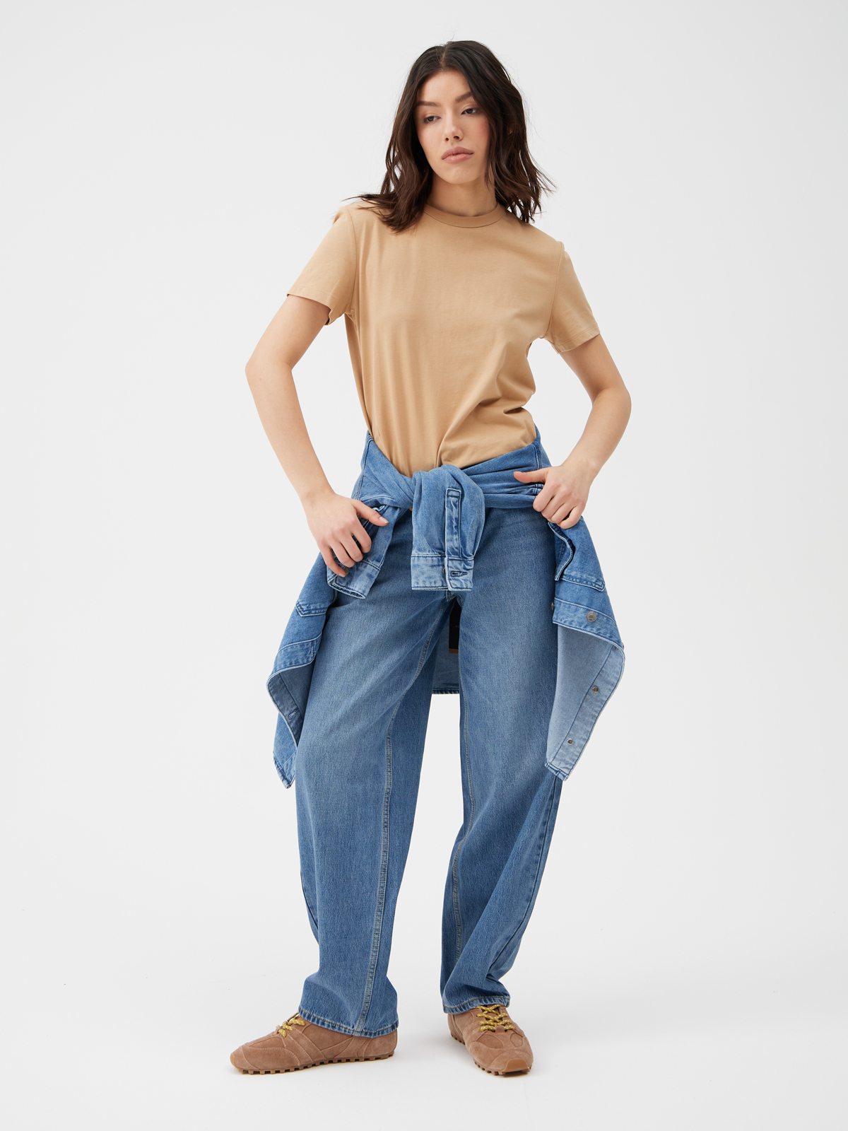Джинсы багги на рост 164-170 см выполнены из 100% хлопкового денима, который обеспечивает их прочность, мягкость и комфорт. Такой деним отлично дышит, придавая комфорт при носке в любое время года и легко сохраняет форму даже после множества стирок. Багги легко определить по объёмному, даже мешковатому фасону. Данная модель отлично сидит на бёдрах за счёт своей формы. Яркая контрастная строчка придает модели стильный акцент и подчеркивает боковые карманы и швы, добавляя динамику и интерес в общий дизайн. Удобные боковые карманы скошенной формы не только придают модели особый шарм, но и добавляют функциональности. Голубой деним с эффектом варенки создает уникальный и выразительный вид джинсов, придавая им характер и индивидуальность. Легкие потертости по всей поверхности джинсов создают им стильный вид и эффект естественного износа. Это подчеркивает вашу творческую натуру и желание быть в тренде. Детали: широкий крой, пять карманов, шлевки для ремня, застёжка на металлическую молнию и пуговицу.