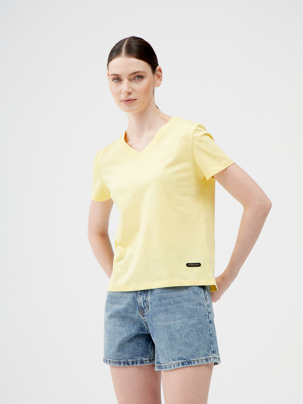 Женская футболка из 100% хлопка с V-образным вырезом горловины. Футболка с V-образным вырезом придаёт образу нотку элегантности и женственности. Такой вырез визуально удлиняет шею и подчеркивает линию декольте, делая фигуру более привлекательной. Прямой силуэт футболки обеспечивает комфорт, что позволяет носить эту футболку как на улице, так и в рабочей обстановке. Мы используем 100% хлопок, известный своей мягкостью и воздухопроницаемостью. Хлопок также гипоаллергенен, что делает футболку идеальным выбором для обладательниц чувствительной кожи. Вы можете быть уверены, что она долго будет сохранять форму и яркость цвета. Аккуратно размещённый сбоку логотип добавляет индивидуальности, а также подчеркнет вашу уникальность и вкус. Футболка представлена в нескольких стильных цветах: нейтральные тона подойдут для создания базовых образов, в то время как яркие оттенки добавят вашему стилю игривости и яркости. Выберите цвет, который отражает вашу индивидуальность! Детали: прямой крой, короткий рукав.
